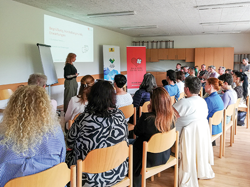 Die Trainerin Sandra Hepperger (1. Hilfe für die Seele und Leiterin artis Unterland) führte durch den Nachmittag. Neben der theoretischen Wissensvermittlung wurde in Kleingruppen diskutiert und die Ergebnisse im Plenum zusammengeführt.
