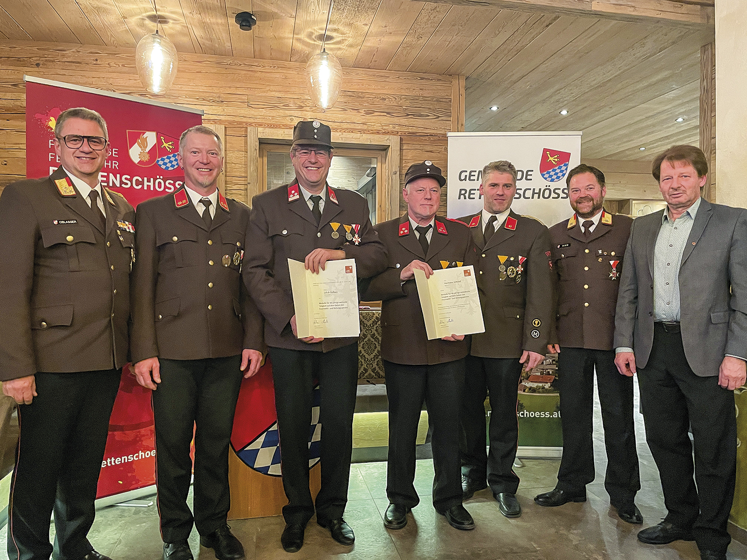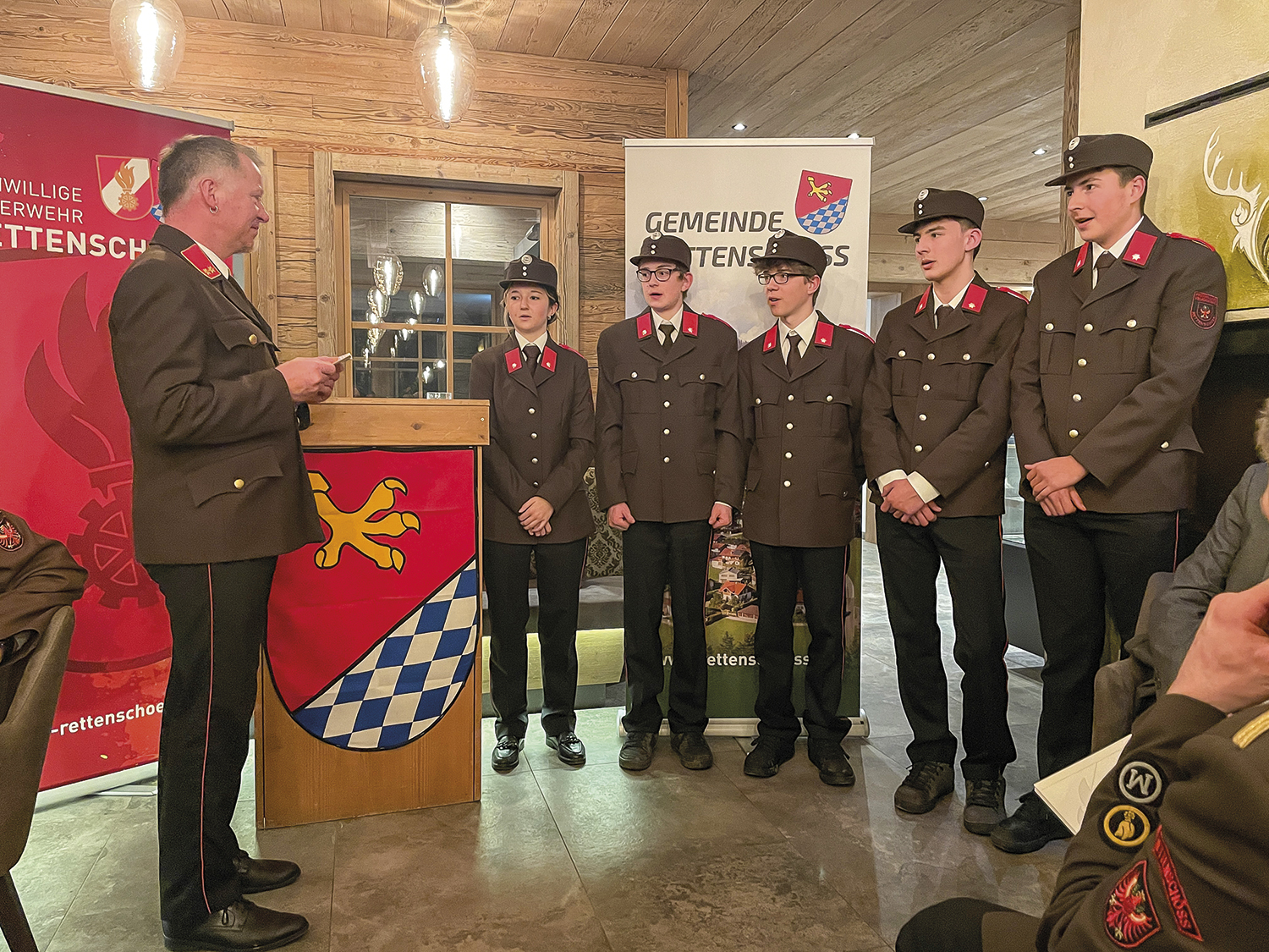Der feierliche Höhepunkt war die Angelobung von fünf neuen aktiven Mitgliedern aus der Feuerwehrjugend. Zudem wurden mehrere Beförderungen ausgesprochen und langjährige Mitglieder für 25, 40 und 50 Jahre Feuerwehrdienst geehrt.