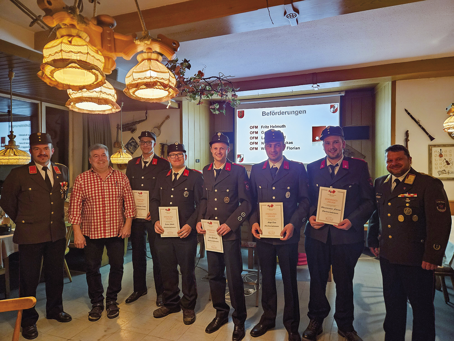 Die anwesenden Ehrengäste gratulierten den Geehrten und Beförderten und würdigten in ihren Ansprachen die gute Zusammenarbeit sowie die kameradschaftliche Atmosphäre innerhalb der Feuerwehr Schwendt.