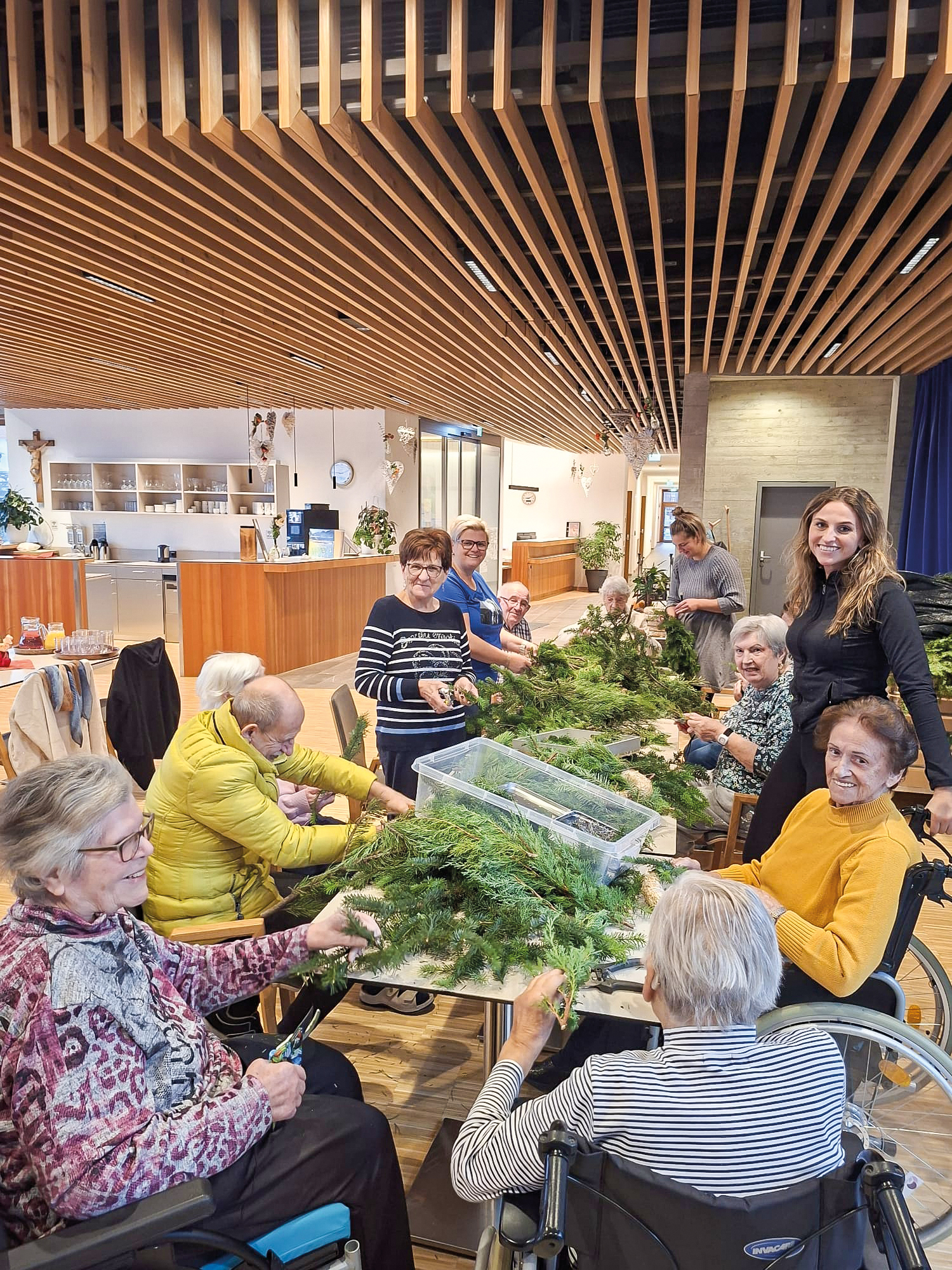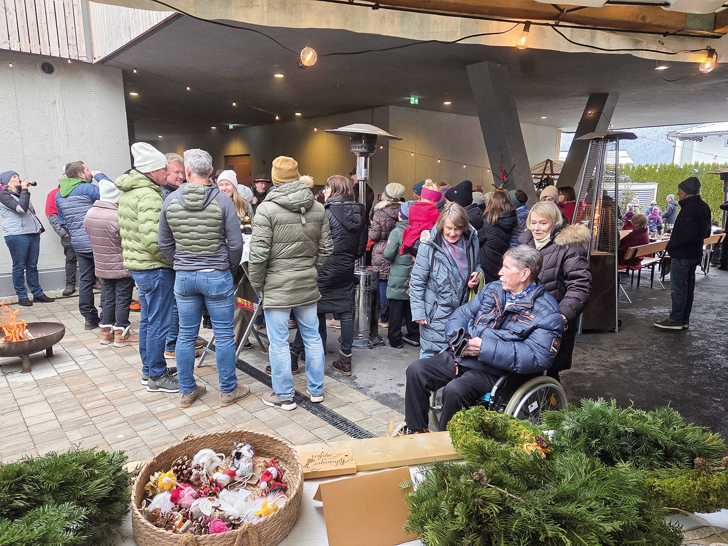 Die letzten beiden Novemberwochen standen im Sozialzentrum Kössen-Schwendt ganz im Zeichen der Vorbereitungen für den großen Adventzauber. Gemeinsam wurden, unterstützt von Sandra Schnalzger und Florentina Blösl, von den Senioren Adventkränze für den Adventmarkt gebunden. Und es wurde natürlich auch sonst fleißig gebastelt und gebacken. „Der Adventzauber selbst war ein grandioser Auftakt für die Vorweihnachtszeit und gleichzeitig einer der Höhepunkte. Zum zweiten Mal seit der Übersiedlung lud das Sozialzentrum zu dieser besonderen Veranstaltung“, erklärt Heimleiter Josef Hörfarter. Das Haus und der Garten erstrahlten im weihnachtlichen Glanz. Neben dem Stand des Sozialzentrums, an dem neben den Basteleien auch selbstgemachte Köstlichkeiten, darunter der beliebte Zirbenlikör, angeboten wurden, gab es Stände einiger externer Aussteller, die mit ihren Waren das idyllische Fest mitgestalteten. Heißer Glühwein, Punsch, Tiroler Gerstlsuppe, Pressknödel und Bosna läuteten kulinarisch die Adventzeit ein. Auf Naschkatzen wartete ein riesiges Kuchenbuffet. Musikalisch verzauberten die Kinder der Musikschule Kössen und auch die Anklöpfler schauten vorbei und verbreiteten Weihnachtsstimmung. „Von unserer Seite und auch im Namen der Bewohner ein herzliches Danke an alle, die uns beim Adventzauber besuchten. Das schönste Fest lebt nicht, wenn die Besucher fehlen. Und danke natürlich an alle helfenden Hände und Sponsoren. Ohne euch alle könnten wir so ein Fest nicht umsetzen. Hier möchte ich speziell unsere Belegschaft hervorheben, die wieder mit vollem Einsatz hinter den Senioren und unserem Fest standen – danke!“, so Josef Hörfarter.