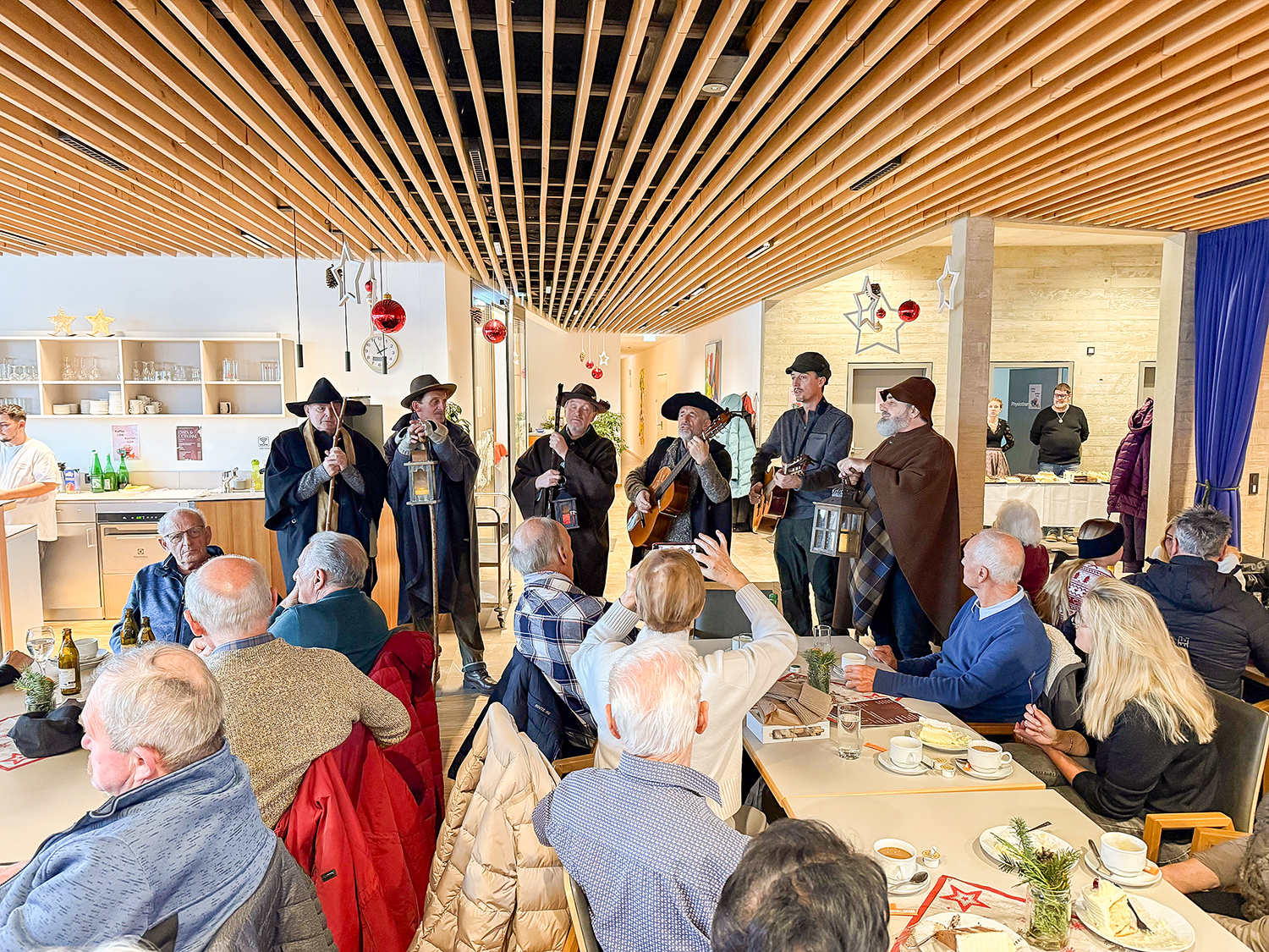 Einmal mehr verwandelte sich das Café im Sozialzentrum in eine kleine, feine Modeboutique. Dieses Mal präsentierte das Modegeschäft Haunhold seine Winterkollektion. Die Bewohner zeigten sich begeistert, stöberten, probierten und kauften sich das eine oder andere Stück. „Viele können sich das nicht vorstellen, aber in ein Geschäft zu gehen, etwas was für uns Alltag ist, entpuppt sich für einige unserer Senioren als zu beschwerlich. Umso willkommen sind diese Angebote. Mode direkt im Sozialzentrum einkaufen – ein echter Traum für unsere Bewohner. Monika und Peter, die Inhaber des Geschäfts, zeigten in einem zweiten Besuch zudem ihr musikalisches Können. Als Duo „MOPED“ trugen sie einige Gstanzln vor und unterhielten so die Senioren auch noch musikalisch. Zauberhafte und abwechslungsreiche Momente während der schönsten Zeit des Jahres. Danke!