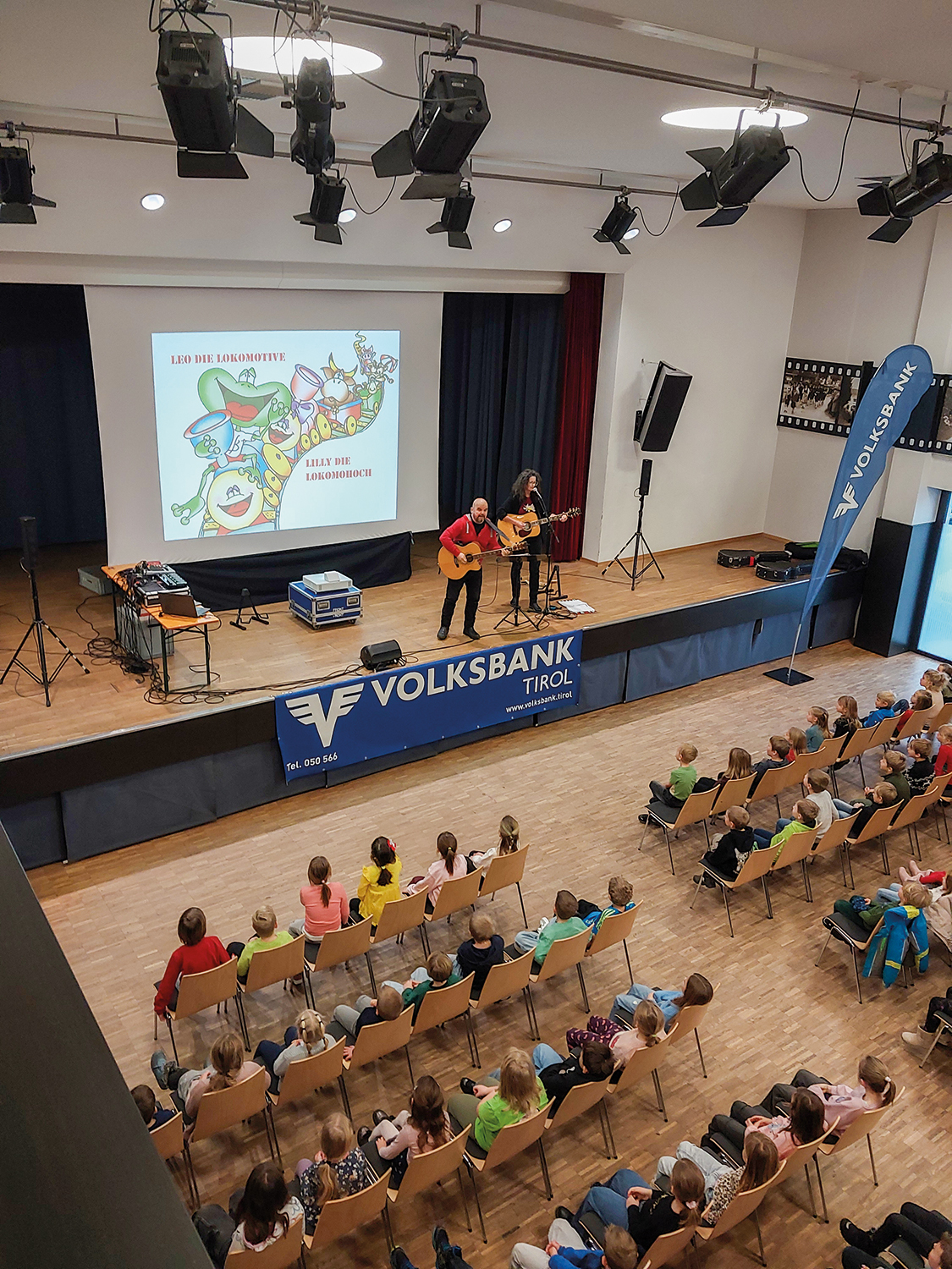Am 3. Dezember fand im Veranstaltungszentrum Kössen (VZK) ein besonderes Schulkonzert mit der beliebten Liedermachergruppe Bluatschink aus dem Außerfern statt. Eingeladen waren die Volksschulen Kössen, Walchsee und Rettenschöss, deren Schülerinnen und Schüler einen unvergesslichen Vormittag erleben durften.