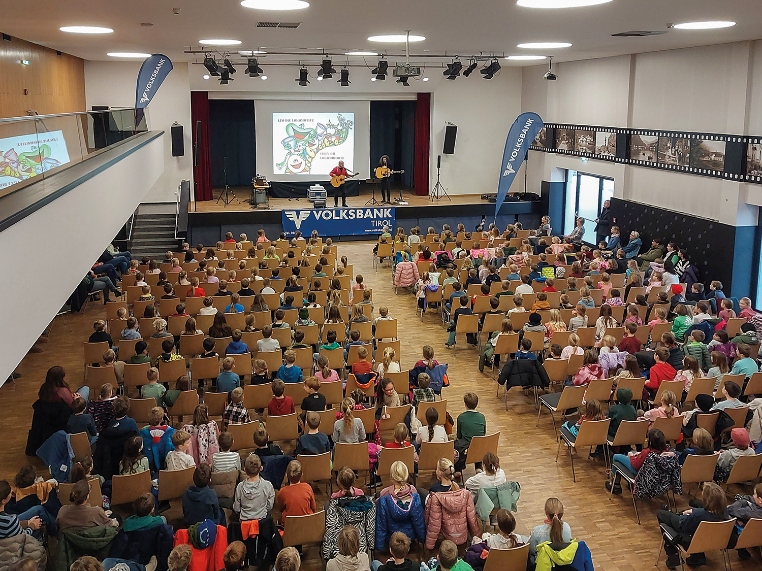 Am 3. Dezember fand im Veranstaltungszentrum Kössen (VZK) ein besonderes Schulkonzert mit der beliebten Liedermachergruppe Bluatschink aus dem Außerfern statt. Eingeladen waren die Volksschulen Kössen, Walchsee und Rettenschöss, deren Schülerinnen und Schüler einen unvergesslichen Vormittag erleben durften.
