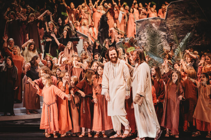 Nach sechs Jahren war es am Sonntag endlich wieder so weit: Die Passionsspiele Erl feierten eine berührende Premiere. Die Neuinszenierung von Regisseur Martin Leutgeb wurde im ausverkauften Passionsspielhaus von rund 1.500 Besucher:innen mit langanhaltendem Applaus und Standing Ovations gefeiert – der offizielle Auftakt für das Passionsspieljahr 2025. Besonders bewegend: Jesus-Darsteller Stefan Pfisterer stand am Ende der Vorstellung sichtlich gerührt auf der Bühne.