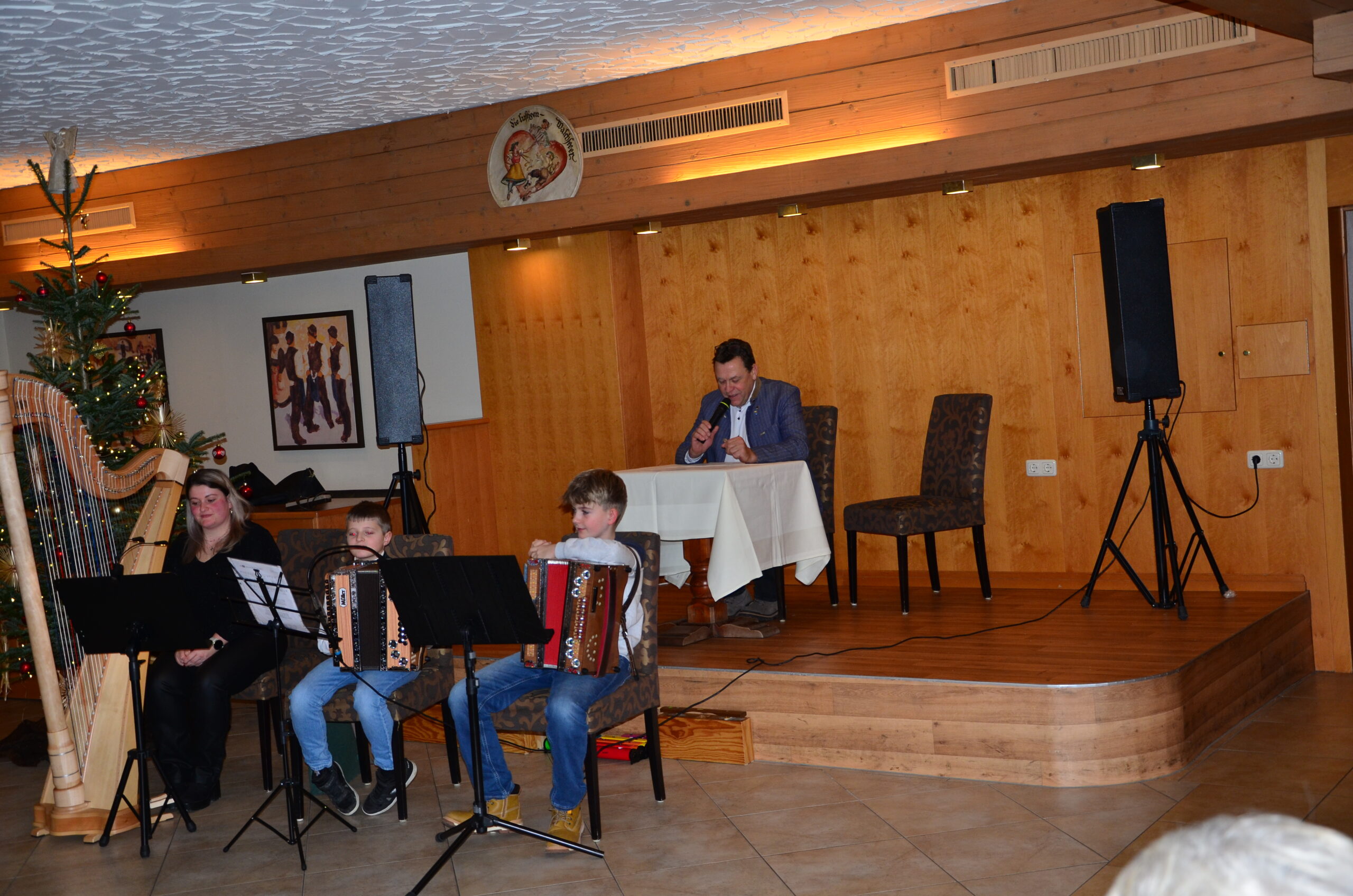 Pfarrer Dr. Rainer Hangler und Bürgermeister Ekkehard Wimmer überbrachten ihre Weihnachtsgrüße, bevor die Kinder der Volksschule Walchsee unter der Leitung von Direktorin Verena Gapp mit dem Theaterstück „Zwölfe läuten“ für eine festliche Atmosphäre sorgten. Musikalisch begleitet wurde die Feier von Schülerinnen und Schülern der Landesmusikschule Untere Schranne, die mit ihren Weihnachtsmelodien durch das Programm führten.