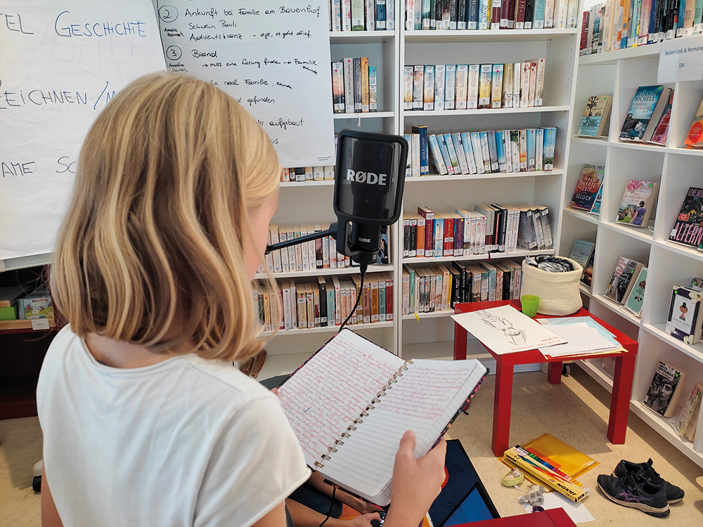 Unsere Judith unterstützte als Stimmtrainerin die Gruppe, sodass die Geschichte perfekt mit Ausdruck und Herz eingelesen wurde. Zum Abschluss wurde die Bücherei noch zum Aufnahmestudio und das Ergebnis könnt ihr in der Adventszeit direkt beim Walchseer Geschichtenweg zusätzlich als Hörbuch erleben!