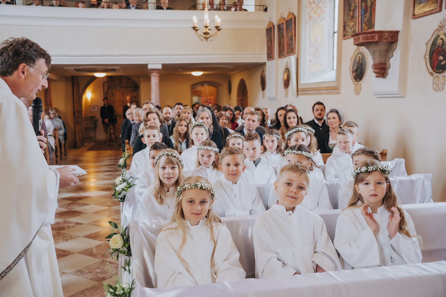 Die Erstkommunion zählt – neben Taufe und Firmung – zu den drei Einführungssakramenten der katholischen Kirche. An diesem besonderen Tag empfangen die Kinder zum ersten Mal die Heilige Kommunion – ein bedeutender Moment des Hineinwachsens in die Glaubensgemeinschaft.