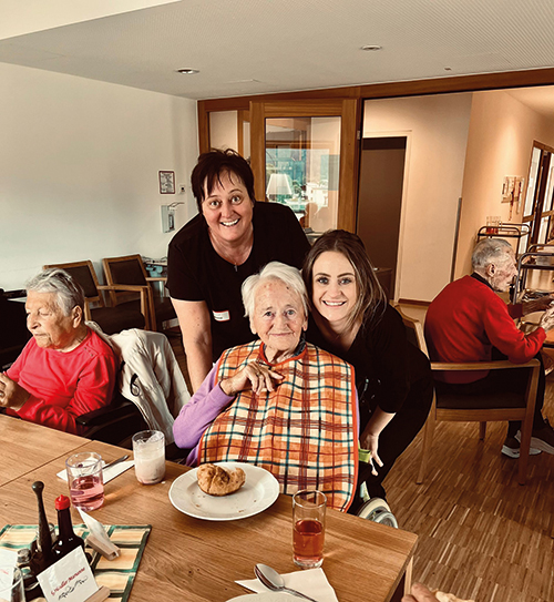 „Essen und Trinken spielen in unserem Haus generell eine große Rolle. Viele unserer Bewohner verbinden mit bestimmten Gerichten Erinnerungen an frühere Tage. Immer wieder erreichen uns kulinarische Wünsche, die wir natürlich nach Möglichkeit zu erfüllen versuchen. Einen ganz besonderen Wunsch hegte Katharina Dagn, eine unserer Bewohnerinnen, schon sehr lange – Mahnudeln mit Fisolensuppe“, erzählt Josef Hörfarter. Katharina Dagn wollte das Gericht aber nicht nur essen, sondern auch selbst zubereiten. Ein Wunsch, der am 10. Juni in Erfüllung ging. Lisi Wimmer stellte ihre private Küche zur Verfügung und mit Hilfe der Dipl. Schwester Natascha ging es ans Kochen der Mahnudeln. Natascha brachte die Mahnudeln schließlich rechtzeitig zum Abendessen ins Sozialzentrum. Dort hatte die Küchencrew bereits die Fisolensuppe zubereitet. Die Begeisterung über dieses Essen war verständlicherweise groß. „Liebe Lisi, liebe Natascha, liebe Sozialzentrum-Küchencrew danke für euren Einsatz und für die Erfüllung dieses speziellen Wunsches“, so Josef Hörfarter, der sich im Zusammenhang mit der Sozialzentrum-Kulinarik einmal mehr sehr herzlich für die Essensspenden bedankt, die das Haus immer wieder erreichen. Von frisch geernteten Salaten, Kräutern, Obst und Gemüse bis hin zu selbst gebackenen Kuchen bzw. Brot.