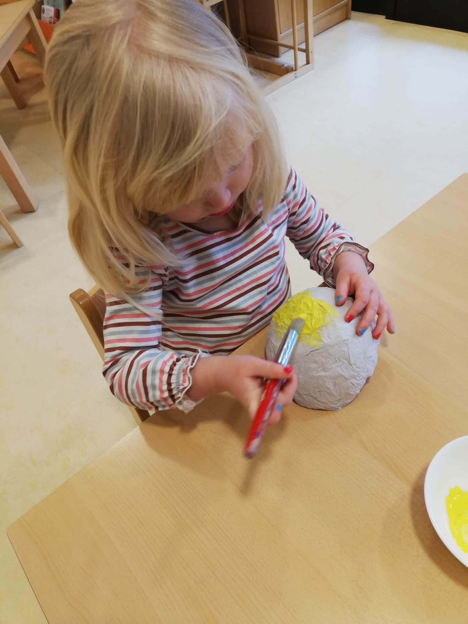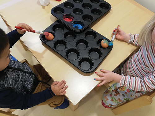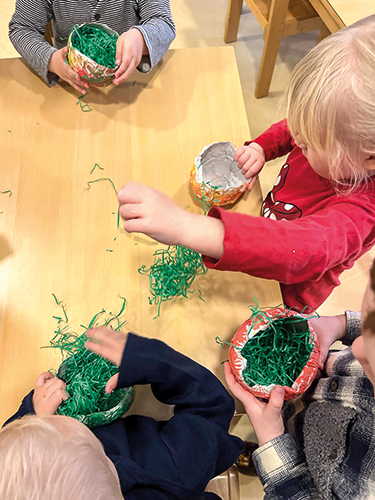 Nach dem schneerarmen Winter hält der Frühling mit großen Schritten Einzug in unser Leben und damit auch in die Kinderkrippe „Das Sonnenhaus“. Das Wetter lässt es zu, dass die Kinder im Garten des Sonnenhauses spielen können. Aber auch das Basteln und Musizieren im Innenbereich des Sonnenhauses stößt auf große Begeisterung. So überbrückten die Kinder die Wartezeit auf den Osterhasen mit dem Basteln eines Osternestes. Außerdem war die Ukulele täglich im Einsatz und „Stups, der kleine Osterhase“ entwickelte sich zum klaren Favoriten der Kinder. Auch spannende Geschichten rund um das Thema Ostern bereiteten den Kindern große Freude und wurden gerne vorgelesen. Nach der großen Freude über den Osterhasen blicken die Kinder nun gespannt auf den Wonnemonat Mai und freuen sich auf viele Sonnenstunden.