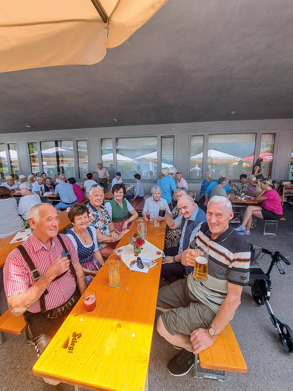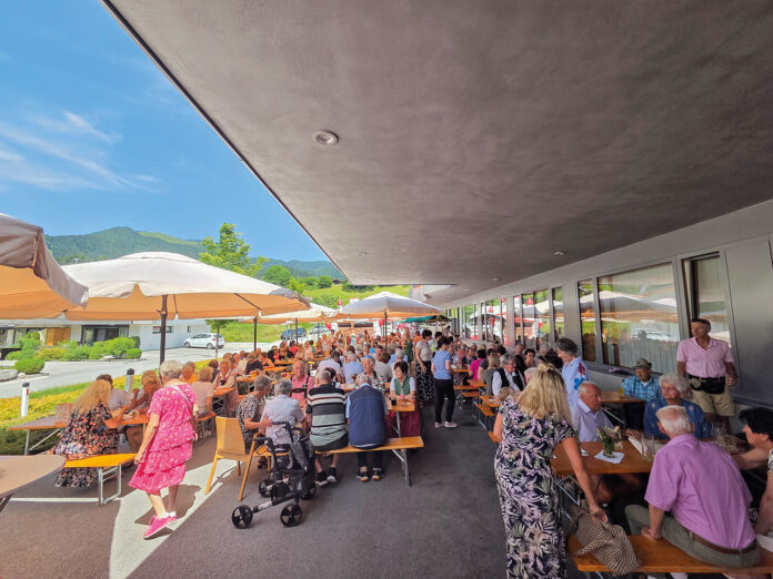 Das beliebte Sommerfest, der gesellige Grillmittag, der imposante Festumzug des Bezirksmusikfests Kössen – der Sommer ist einmal mehr eine Zeit der Feste & Feiern für die Bewohner des Sozialzentrums und des Betreuten Wohnens. Das Sommerfest war natürlich der Höhepunkt der letzten zwei Monate. Unzählige Besucher kamen auch heuer wieder im Sozialzentrum vorbei und feierten gemeinsam mit den Senioren. Wie jedes Jahr eröffnete den Festtag die Heilige Messe gestaltet von Kössens Pfarrer Rupert Toferer, musikalisch umrahmt von Lisi und Wetti. Nach der Messe starteten im Sozialzentrum die Feierlichkeiten. Gegrillte Köstlichkeiten und ein äußerst vielfältiges Kuchenbuffet begeisterten die Besucher. „Die Schweinan mit Kraut“ spielten zünftig auf, während sich die Kinder in der Hüpfburg austobten. Dazu konnten an Ständen von den Senioren über das Jahr hinweg gefertigte Basteleien gekauft werden. „Es war ein wundervoller Tag, der bleibende Erinnerungen hinterließ. So viel Freude, gute Laune und Gemeinschaftsgefühl erfüllt die Herzen der Senioren“, freut sich Sozialzentrumsleiter Josef Hörfarter, der in dem Zug allen Mitwirkenden und Unterstützern dankt. „Ohne euch wäre das alles gar nicht möglich. Ich kann nur immer wieder Danke sagen.“