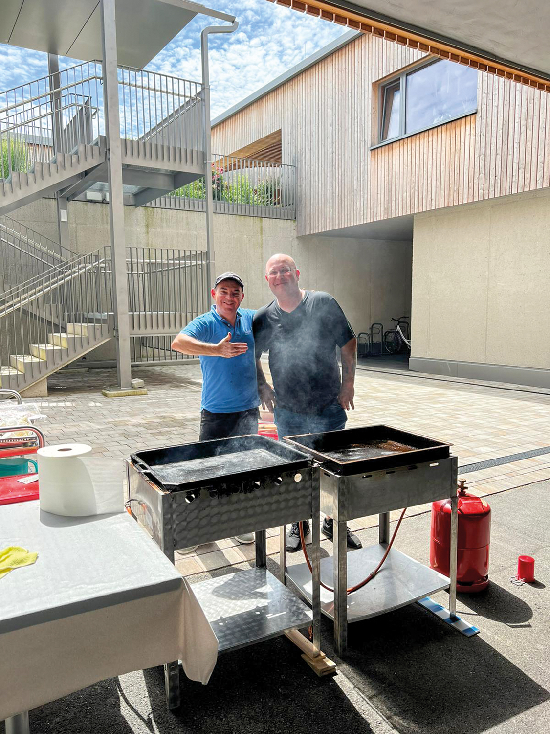 Würziger Grillduft erfüllte im Juli das Sozialzentrum, denn Regenwetter hin oder her, gegrillt wurde trotzdem. Fleisch, Gemüse, Saucen, Salate – alles was zu einer zünftigen Grillerei gehört, war vorhanden. Die Bewohner des Sozialzentrums, des Betreuten Wohnens und die Klienten der Tagespflege genossen das leckere Essen im Sozialzentrumscafé sichtlich. Es war ein gemütliches Beisammensein, bei dem auch Erinnerungen an eigene Grillfeste erzählt wurden. „Unser Küchenteam hat sich wieder selbst übertroffen. Es schmeckte allen vorzüglich. Ein großes Danke an jeden, der mitgeholfen hat, dass diese Grillerei stattfinden konnte. Danke an das Küchenteam und unsere Mitarbeiter“ so Josef Hörfarter.