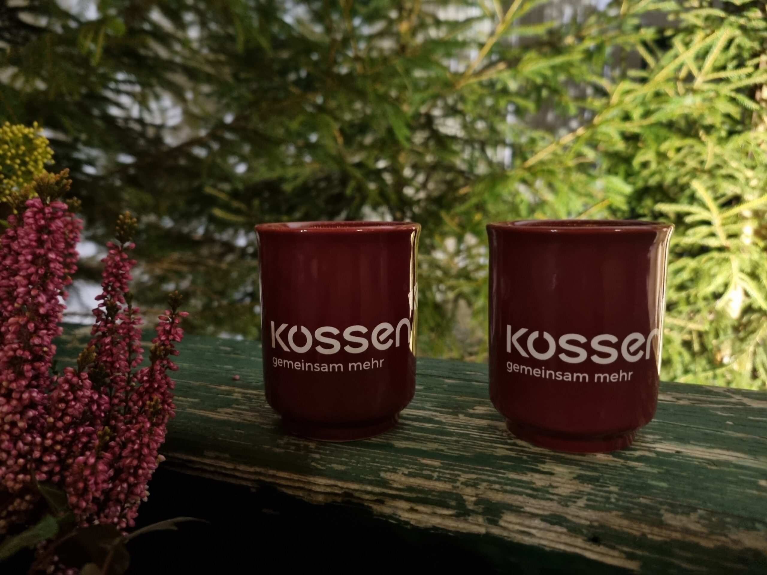 Zu den bislang verwendeten weißen Tassen mit roter Aufschrift kamen vor kurzem noch rote Tassen mit dem „gemeinsam mehr“-Logo in Weiß. Die Tassen tragen damit auch zum einheitlichen Außenauftritt Kössens bei.