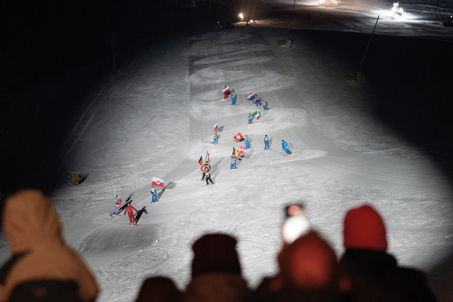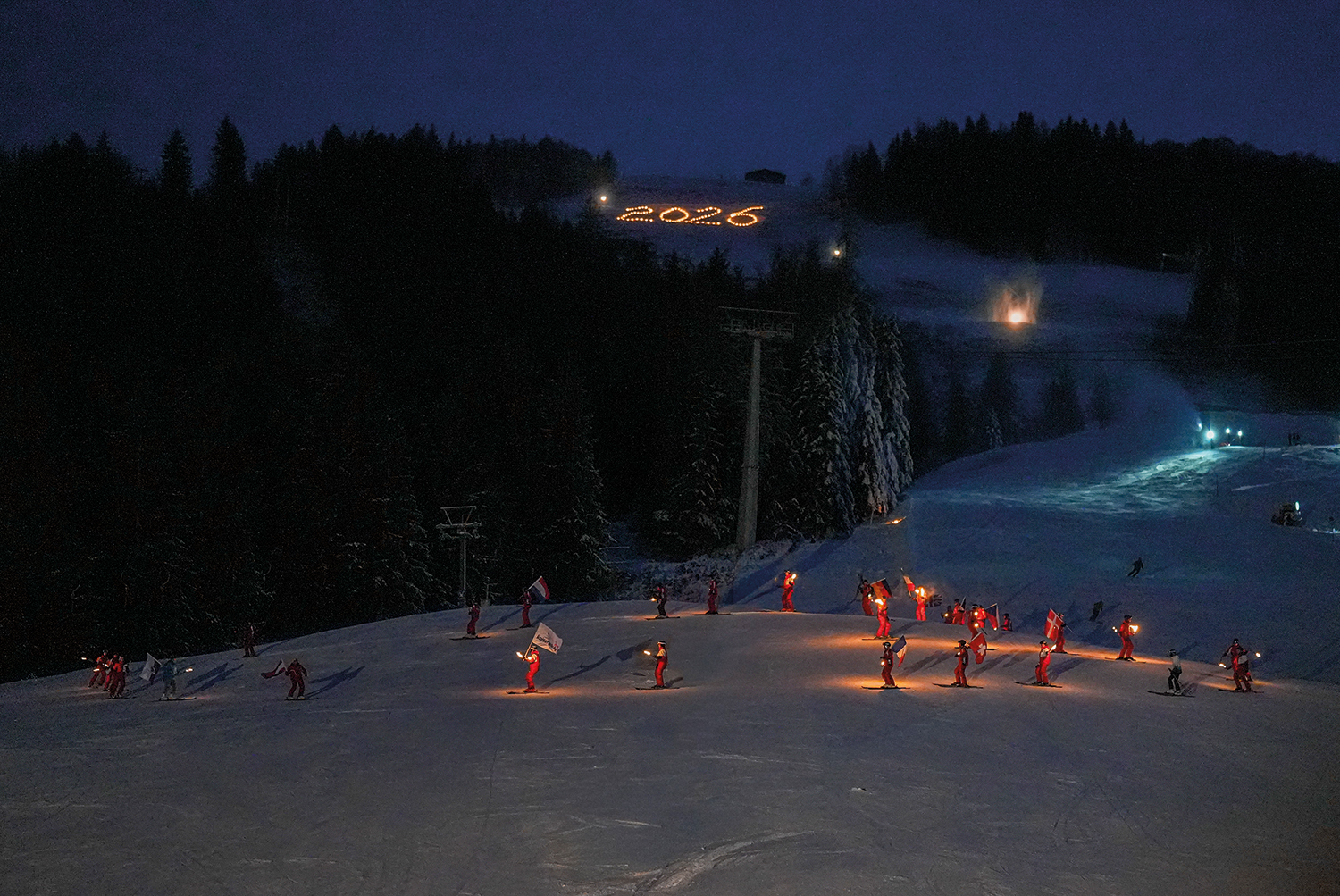 Mit brennenden Fackeln fuhren die Skilehrer die Piste hinunter und formierten anschließend die leuchtende Jahreszahl 2026, die weithin sichtbar den nahenden Jahreswechsel ankündigte. Dank kostenloser Shuttlebusse gelangten die zahlreichen Zuschauer bequem ins Dorfzentrum.