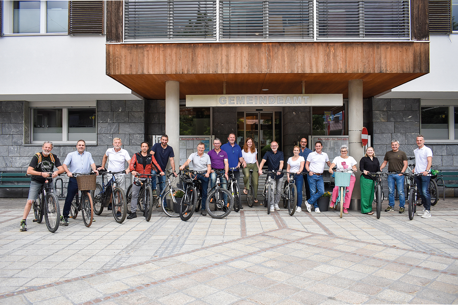 Im Rahmen der Teilnahme Kössens an der Initiative „Tirol radelt“ setzten die Gemeinderäte aufs Rad und kamen am 4. Juni mit dem Fahrrad zur Gemeinderatssitzung, die passenderweise zur „GemeindeRADsitzung“ umbenannt wurde. Nachdem die Aktion im Vorjahr wegen Schlechtwetters entfallen musste, herrschte heuer, bei der nun zweiten „GemeindeRADsitzung“, perfektes Radlwetter. „Was mich als Fahrradfan besonders freut, es kam wirklich der gesamte Gemeinderat geschlossen mit dem Rad zur Sitzung. Ein Engagement, das deutlich unsere Einstellung als radaffine Gemeinde unterstreicht“, so Reinhold Flörl, der ebenfalls fleißig in die Pedale tritt und derzeit an der Challenge „Goldenen Fahrradklingel“ zwischen den Tiroler Gemeindevertretern teilnimmt. Vor zwei Jahren holte der Bürgermeister die „Goldene Fahrradklingel“ bereits nach Kössen. „Natürlich bin ich bestrebt, den Titel 2025 wieder zu erringen. Ich will dazu jeden Tag im Juni mit dem Rad fahren, damit die Trophäe wieder dorthin kommt, wo sie hingehört – zu uns nach Kössen“, erklärt Reinhold Flörl mit einem Augenzwinkern. Zum Redaktionsschluss, am 10. Juni, lag der Bürgermeister auf jedem Fall gut im Rennen.