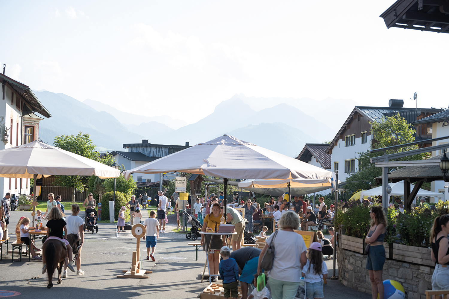 Das regnerische Wetter im Juli machte es den Veranstaltern heuer nicht leicht, gleich zwei Kössener Fest/Spiele-Termine mussten abgesagt werden. Umso größer war das Interesse an den restlichen drei Terminen, bei zweien lockte sogar schönstes Kaiserwetter zahlreiche Besucher an. Wie in den Jahren zuvor erfüllte buntes Markttreiben das Dorfzentrum. Rund 14 Marktstandbetreiber boten eine bunte Palette an Produkten. Das Angebot reichte von duftenden Ölen und Seifen über hochwertige Keramik- und Dekoprodukte bis hin zu köstlichen Käsespezialitäten, Brot, Eiern und Nudeln. Der Duft von gebrannten Mandeln lag in der Luft, Fruchtspieße und Lebkuchen warteten auf Naschkatzen. „Besonders beliebt war natürlich wieder unser Kinderprogramm. Sitzen am Lagerfeuer, Schmuckbasteln, Ponyreiten, tierischer Besuch vom Zottelhof, Kinderschminken, sogar der Kasperl kam vorbei“, blickt Ortsmarketingkoordinatorin Christina Jöchtl zurück und dankt allen, die für das abwechslungsreiche Programm gesorgt haben.