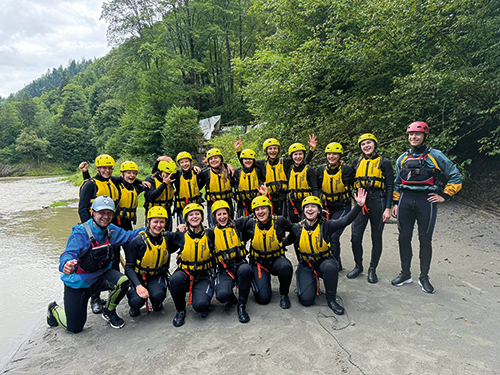 Die Damen vom FC Kössen schlossen ihre erste Saison mit einem erlebnisreichen Mannschaftsausflug ab. „Raften auf der Tiroler Ache“ war angesagt. Nachdem alle am Treffpunkt eingetroffen waren, bekamen wir eine kurze Einführung von unseren Rafting-Guides Julian und Vincent. Kurz darauf begann, trotz schlechter Wetterbedingungen, das Wildwasserabenteuer. Ausgestattet mit Neoprenanzügen, Schwimmwesten und Helmen ging es die Tiroler Ache hinunter in Richtung Schleching. Schon bald besserte sich das Wetter und zahlreiche Abenteuer warteten auf uns. Wir ließen uns den Fluss hinabtreiben, sprangen von einem Felsen und badeten unter einem Wasserfall. Nach gut zweieinhalb Stunden Wasserspaß kamen wir alle etwas verfroren, aber wohlbehalten in Schleching an, von wo aus uns der Bus zurück nach Kössen brachte. Als Ausklang machten wir es uns am Fußballplatz mit Grillgut und Getränken noch gemütlich. Doch auch auf das Fußballspielen wird bei unseren Damen nicht vergessen. Die Mannschaft ist schon wieder fleißig beim Trainieren für die Herbstsaison und zählt auf Unterstützung von der Zuschauertribüne.