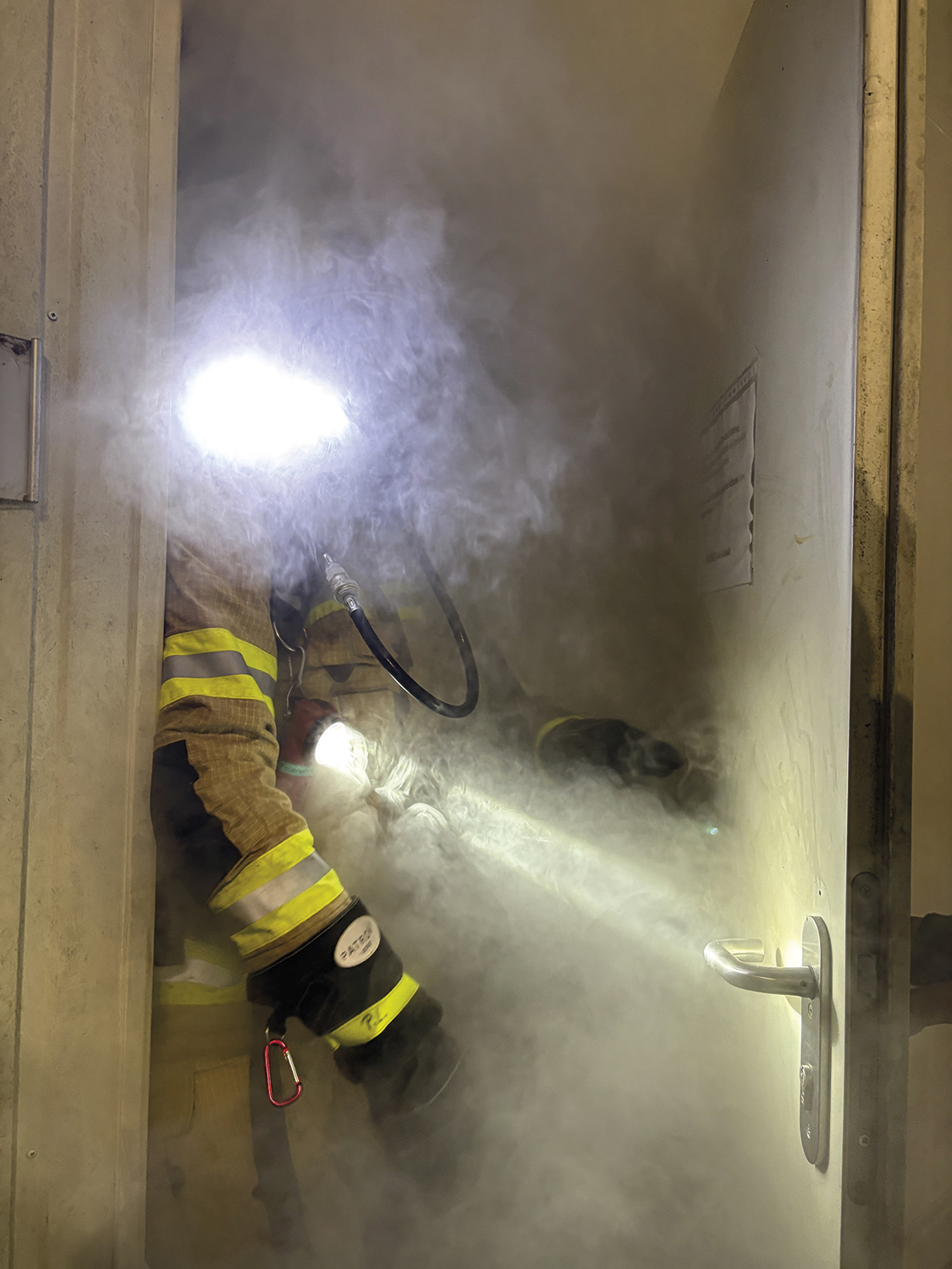 Unter anspruchsvollen Bedingungen – starke Verrauchung, Hindernisse und nahezu keine Sicht – mussten verschiedene Aufgaben gemeistert werden. Eine richtig intensive und lehrreiche Erfahrung für unsere Atemschutzträger.