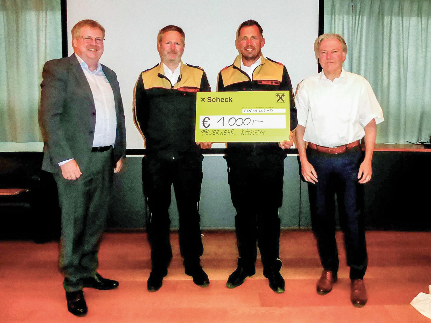 Bei der diesj.hrigen Generalversammlung der Raiffeisenbank Kössen– Kirchdorf durfte die Freiwillige Feuerwehr Kössen eine großzügige Spende in Höhe von 1.000 € entgegennehmen. Der Betrag wird für die Anschaffung eines Einsatzunterstützungstablets verwendet.