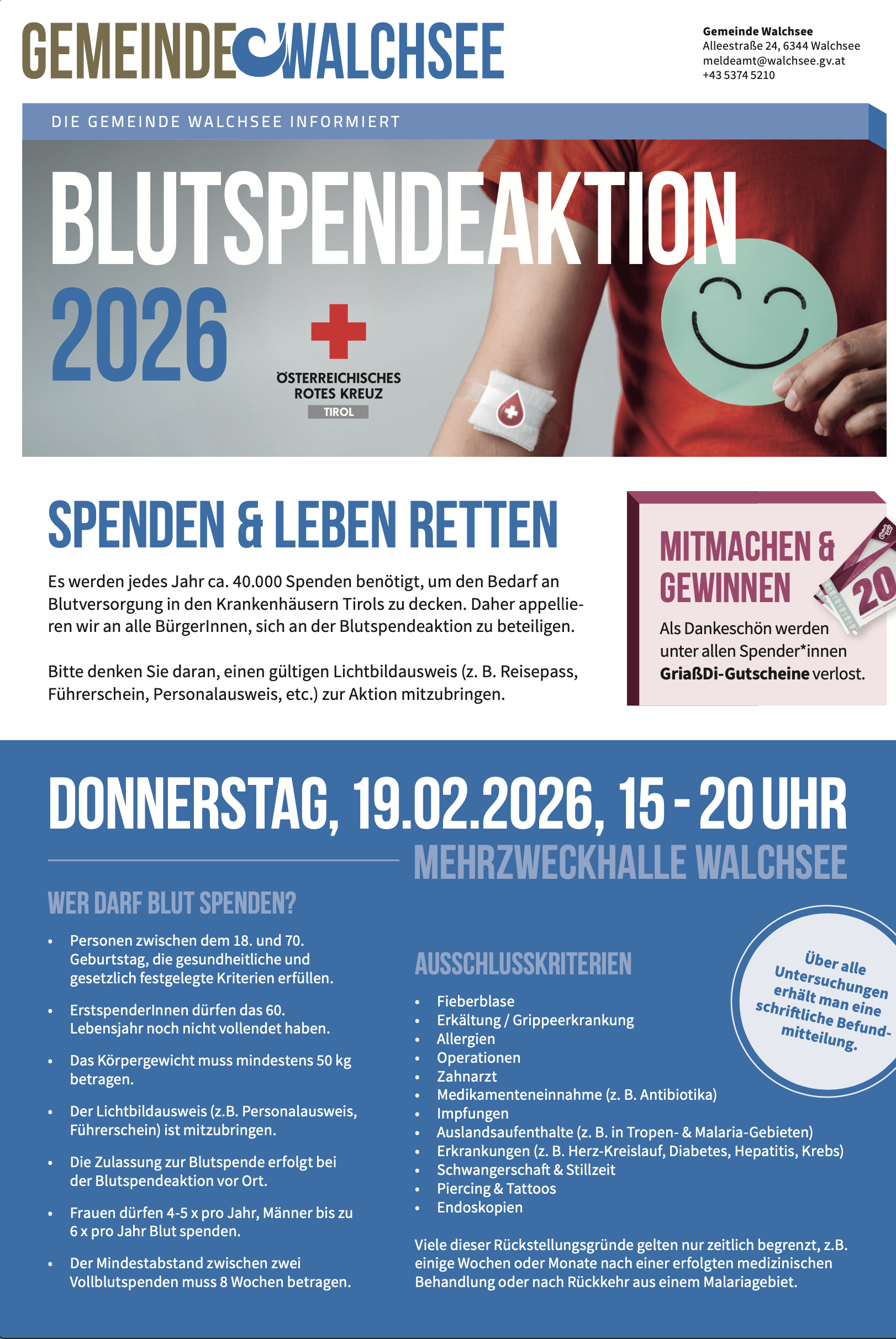 Amtliche Mitteilungen und Informationen der Kaiserwinkl-Gemeinden Kössen, Walchsee, Schwendt und Rettenschöss