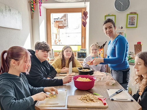 In der Schule wird fleißig Brot gebacken und dann als Jausenbrot mit Butter bestrichen. Das dabei Ersparte gaben die Kinder in die Spenden-Würfel.