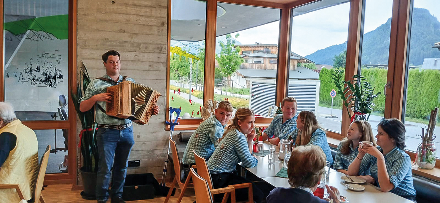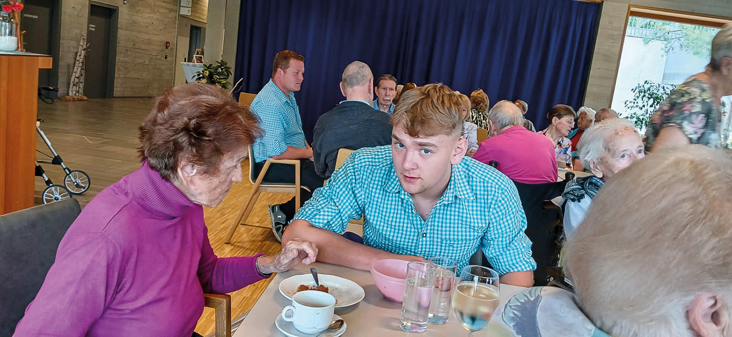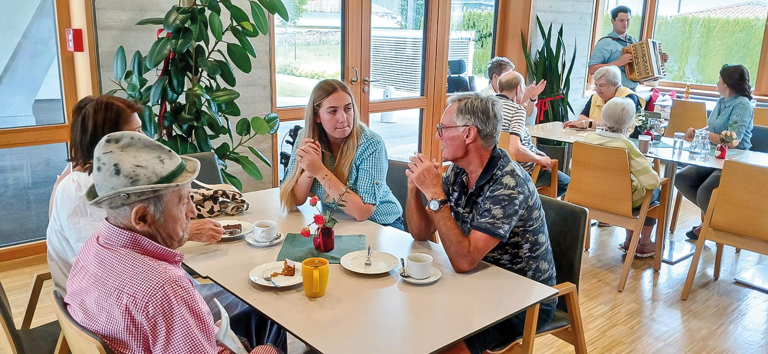 „Auch kulinarisch genießen wir momentan die warme Jahreszeit. Zahlreiche Kräuter- und Salatspenden erreichten uns in den letzten Wochen. Ein Hochgenuss. Kleine Gesten, die Großes bewirken. Beim Essen zaubern sie den Senioren regelmäßig ein Lächeln ins Gesicht“, verrät Josef Hörfarter, der auch allen Kuchenbäckerinnen dankt, die immer wieder süße Köstlichkeiten im Sozialzentrum vorbeibringen. „Und natürlich geht auch an alle anderen Spender ein herzliches Danke für alles, was ihr beitragt“, so Josef Hörfarter. Ein besonderer Dank des Heimleiters geht an die Jungbauern, die uns auf einen Kaffeeratscher besuchten. Peter Landmann musizierte mit der Zugin, die Jungbauern setzten sich zu den Bewohnern, redeten mit ihnen über früher oder erzählten von ihrem Alltag. „Man kann sich gar nicht vorstellen, wie viel Freude solche Besuche bereiten. Die strahlenden Gesichter sprechen Bände. Die Gespräche darüber halten noch tagelang an. Besuche wie diese sind äußerst wertvolle Dienste. Danke euch und auch allen anderen, die sich die Zeit für einen gemütlichen Plausch nehmen.“
