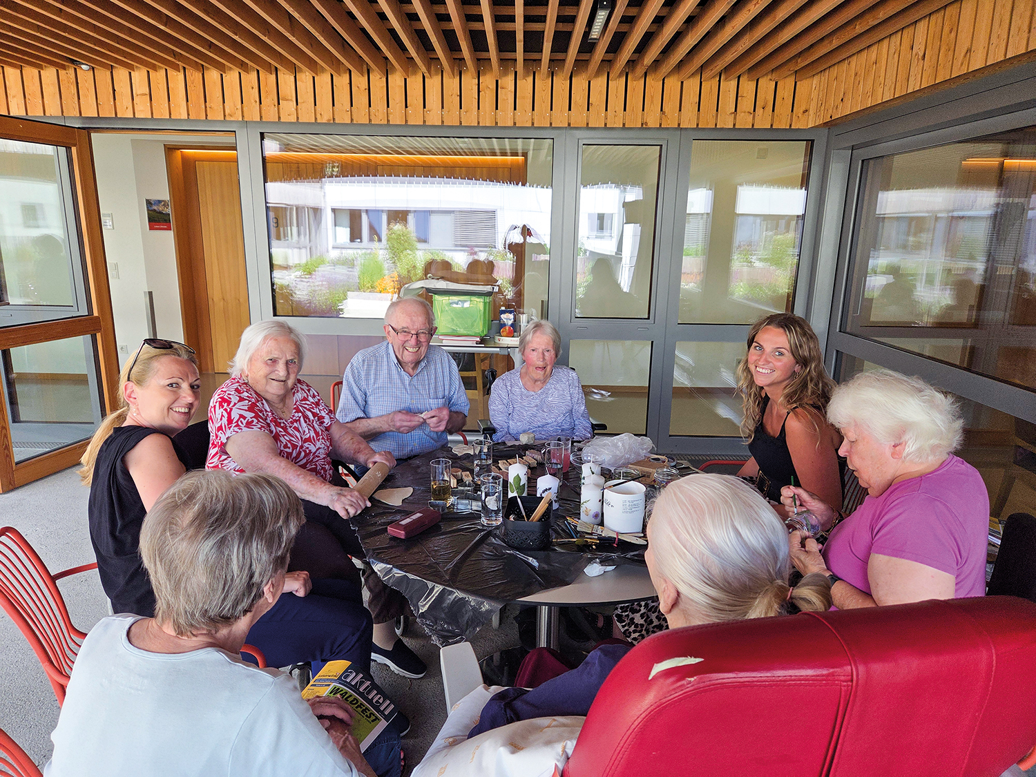 Die Bewohner des Betreuten Wohnens wurden selbst zu Gärtnern und gestalteten gemeinsam ihre Terrassen und die Blumenbeete. Der Lohn ist eine bunte Blumenpracht, die gute Laune versprüht. „Die gemeinsame Gartenarbeit fördert den Zusammenhalt und das Ergebnis kann sich sehen lassen. Dieses Miteinander zu erleben, ist jedes Mal eine Freude. Danke euch dafür“, so Josef Hörfarter. Auch beim kleinen Grillfest im Betreuten Wohnen hieß es gemeinsam anpacken. Jeder brachte sich ein. Ob beim Tischdecken, Saucen rühren, Salat anmachen oder Dekorieren. Ein stimmungsvolles Erlebnis mit vielen köstlichen Momenten.