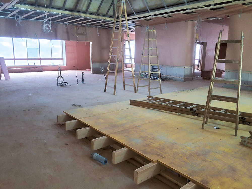 Am 7. Jänner nahmen die Bauarbeiten am zukünftigen Bildungszentrum nach nur zehn Tagen Pause wieder Fahrt auf. Seither herrscht auf der Baustelle einmal mehr Hochbetrieb. Die Fensterbauer waren im Großeinsatz, da bis Ende Jänner alle Fenster montiert werden mussten. Ebenfalls noch im Jänner starteten die Bodenleger mit dem Verlegen der Holzfußböden. Wir setzen in allen Räumen auf unbehandeltes Holz, nur im Eingangs- und Garderobenbereich sowie im Treppenhaus werden robustere Materialien verwendet. Generell haben wir uns bei der Innenausstattung für das helle Holz der Weißtanne entschieden. Eine optimal Kombination zum Lehmkalkputz, um eine helle und doch gemütliche Atmosphäre entstehen zu lassen. Im Musikzimmer der Volksschule wird ein akustischer Holzverbau Kindern und Lehrern zukünftig ein entsprechend gutes Arbeiten ermöglichen. Von den Vergaben her sind inzwischen nur noch einzelne Spielgeräte offen. Diese werden nach dem noch vorhandenen Budget angeschafft. Wir wollen das Budget keinesfalls überschreiten, daher kann es eventuell vorkommen, dass das eine oder andere Spielgerät erst in ein oder zwei Jahren erworben wird. Um den finanziellen Rahmen nicht zu sprengen, setzen wir im Außenbereich auf das Können unserer Bauhofmitarbeiter. An dieser Stelle ein großes Danke für euer Engagement. Die Männer erklärten sich nämlich sofort bereit, die Bänke und Tische für die Jausen- und Ruheplätze in Eigenregie herzustellen. Bereits jetzt haben die Mitarbeiter mit dem Möbelbau nach den Plänen der Architekten begonnen. Nur als Beispiel – die Materialkosten für zehn Bänke liegen unter dem Angebot für eine Bank im Handel.