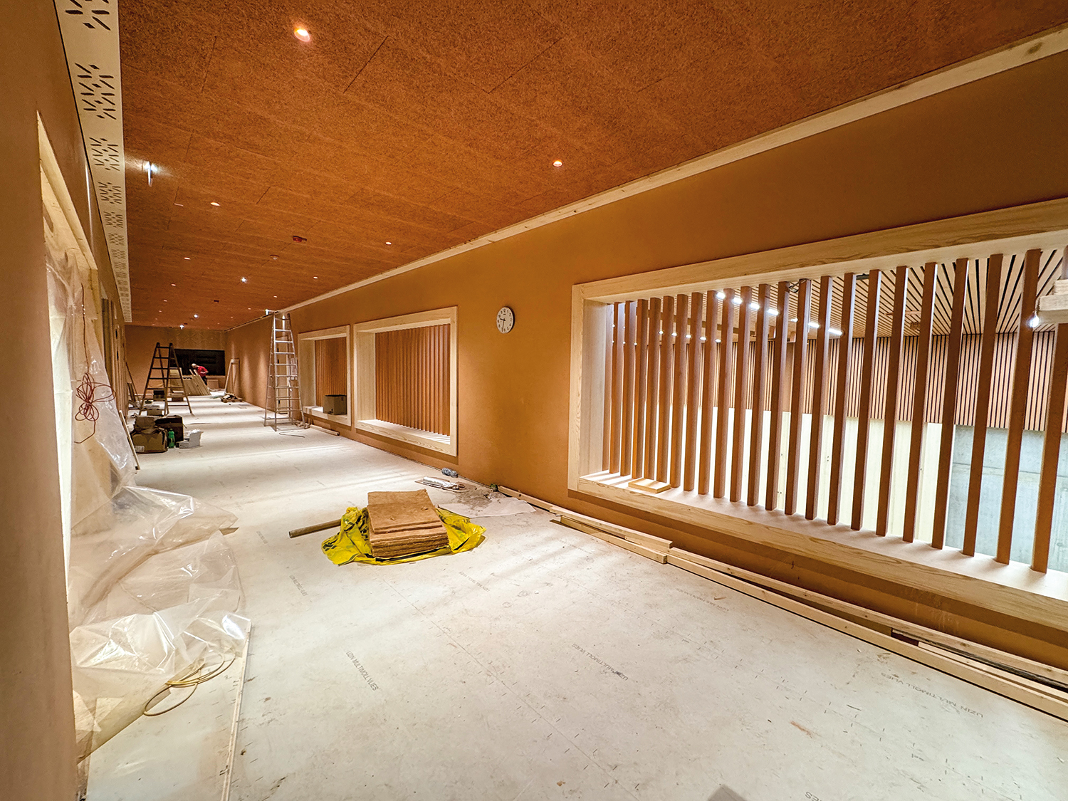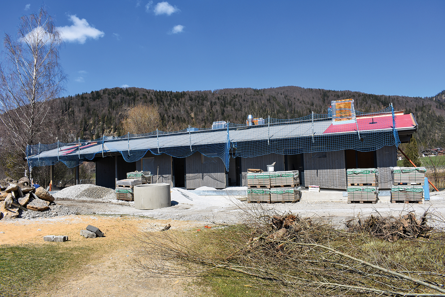 Der Innenausbau des Bildungszentrums läuft nach wie vor auf Hochtouren. Sämtliche Firmen, die am Innenausbau beteiligt sind, stehen derzeit im Einsatz. Das Haus nimmt nun auch im Inneren immer mehr Gestalt an. Mit Frühlingsbeginn wurde zudem großflächig mit dem Bau der Außenanlagen gestartet. Bisher bestehende Asphaltdecken wurden entfernt. Die Pflasterarbeiten wurden genauso wie die Bepflanzungen begonnen, wobei sich die Begrünung des Hangs wie erwartet als aufwendig erweist. Sehr erfreulich ist, dass wir immer noch im Zeitplan liegen. Das heißt, läuft alles wie bisher, erfolgt die Fertigstellung mit Mitte Juni. Danach sollten nur noch geringfügige Kleinigkeiten anstehen.