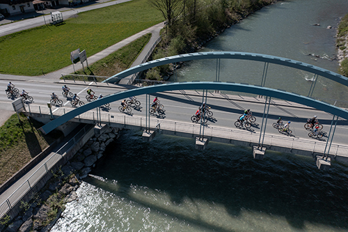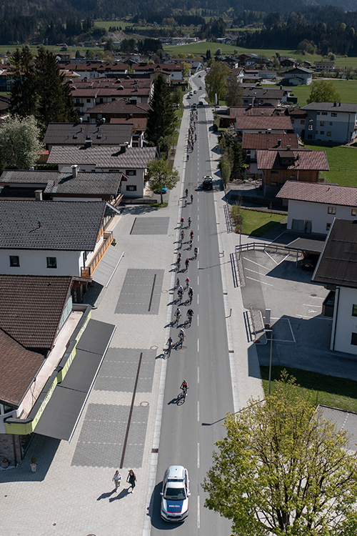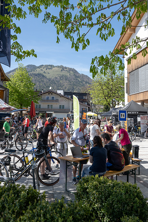 Natürlich stand im Zuge des Events die Aktion „Tirol radelt“ im Mittelpunkt, die auch heuer wieder vom Umweltressort in Kössen umgesetzt wird. Im Rahmen der Fahrrad-Saisonauftakt-Veranstaltung des Ortsmarketings konnten sich die Besucher bequem für „Tirol radelt“ bei dem Stand der E5-Gemeindevertreter anmelden. In dem Zusammenhang gab es einen eigenen Wettbewerb. „Kössen landete im Vorjahr bei Tirol radelt in der Kategorie „Gemeinden unter 5.000 Einwohnern“ trotz der am meisten gefahrenen Kilometern aufgrund der geringeren Teilnehmerzahl auf Platz 2. Unser großes Ziel ist es jetzt natürlich, den ersten Platz zu erreichen“, so Ortsentwicklungs-Obmann Hans Knoll. Das Ortsmarketing startete daher kurzerhand eine Challenge. Auf die drei größten Gruppen, die sich im Rahmen der Fahrrad-Saisonauftakt-Veranstaltung zu der Aktion Tirol radelt anmeldeten, warteten Preise in Form von GriaßDi!-Gutscheinen. Dabei landeten die „Schokobon-Ritter“ mit 16 Teilnehmern auf Platz drei, dicht hinter dem „ASV Volleyball Kössen“ mit 17 Radlern. Mit einem gebührenden Abstand sicherte sich letztlich der „Trachtenverein Landsturm“ mit 32 Gruppenmitgliedern den ersten Platz. Die ersten Kilometer konnten die neu angemeldeten „Tirol radelt“-Teilnehmer schließlich direkt am Fest sammeln, lud das Ortsmarketing doch zur gemeinsamen Ausfahrt. Begleitet vom ASV Radsport unter Obmann Philip Kreinig, der Polizei und Feuerwehr ging es eine etwa vier Kilometer lange Runde ums Dorf.