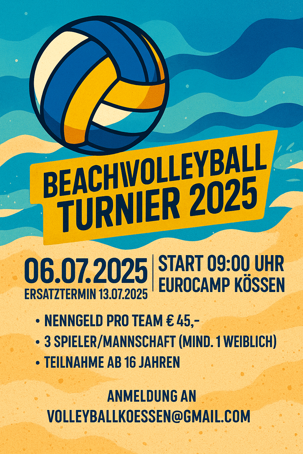 Aktuell laufen die Vorbereitungen für das alljährliche Beachvolleyballturnier am 6. Juli 2025 auf dem Platz des Eurocamps Wilder Kaiser Kössen. Der VC Kössen freut sich auf spannende Spiele im Sand, gute Stimmung und viele Teilnehmer:innen. Anmeldungen sind noch möglich!