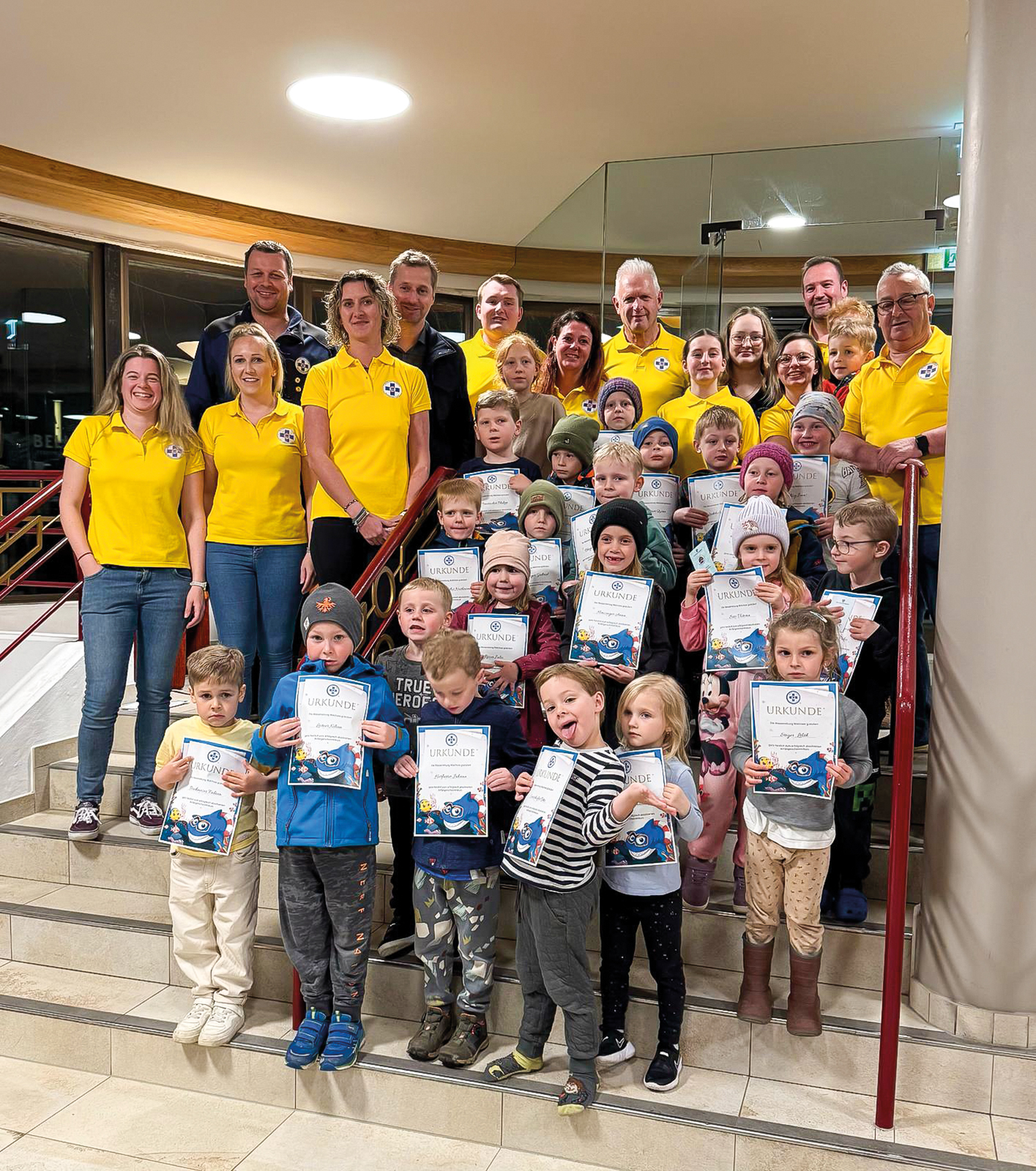 Im März war es wieder soweit: Unser jährlicher Schwimmkurs für Kinder ab 5 Jahren hat im Hotel Bellevue in Walchsee erneut für jede Menge spritzigen Spaß gesorgt! Über 50 Kinder aus Kössen, Schwendt, Walchsee, Rettenschöss und weiteren Orten sprangen ins kühle Nass, um Schwimmen zu lernen, oder ihre Schwimmfähigkeiten zu verbessern. Der Kurs fand über drei Wochen statt, mit je drei Terminen pro Woche. Viele der Kids durften stolz das „Frühschwimmer“-Abzeichen, den „Freischwimmer“ und sogar das „Fahrtenschwimmer“-Abzeichen mit nach Hause nehmen. Aber nicht nur die Kinder haben sich ins Zeug gelegt, auch über 25 freiwillige Helfer haben alles gegeben, damit der Kurs sicher und reibungslos ablief. Ein riesiges Dankeschön an alle Helfer, die Gemeinden für die großartige Unterstützung und an die Eltern für ihr Vertrauen. Und natürlich ein fettes Lob an die Kinder, die mit so viel Energie, Freude und Lachen dabei waren!