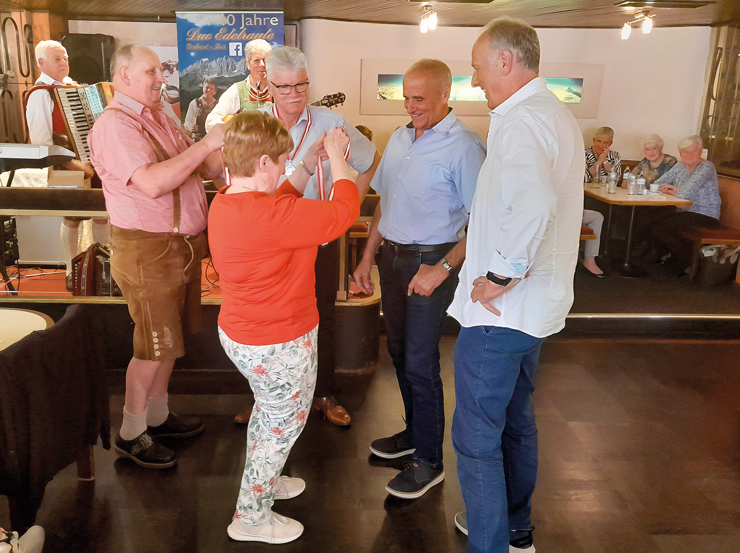 Wer mochte, wanderte mit Wanderbegleiter Heinz Exenberger über die Glasalm zur Edernalm. Wer nicht mehr gut zu Fuß ist, für den stand ein Taxi bereit. Außerdem war es auch jedem freigestellt, selbst gemütlich direkt zur Alm zu wandern.