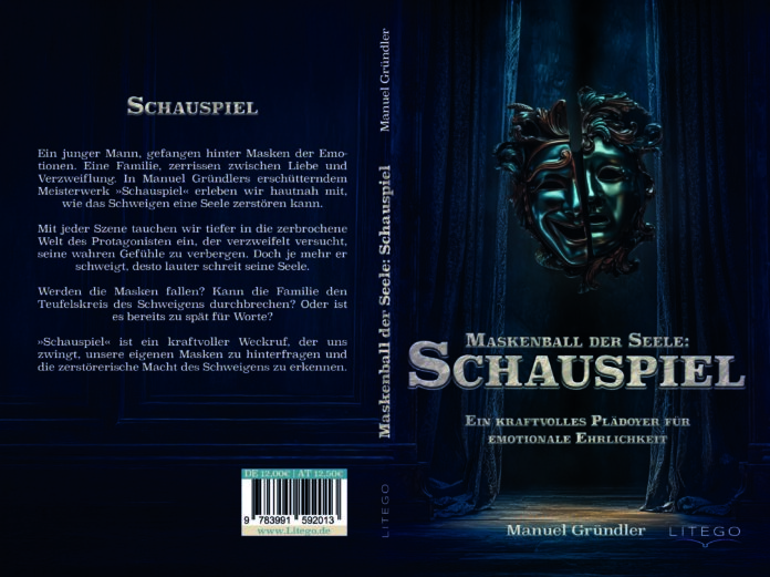 In seinem neuen Buch „Maskenball der Seele: Schauspiel“ präsentiert Autor Manuel Gründler die Geschichte eines jungen Mannes, der hinter seinen Emotionen gefangen ist und in einer zwischen Liebe und Verzweiflung zerrissenen Familie lebt.