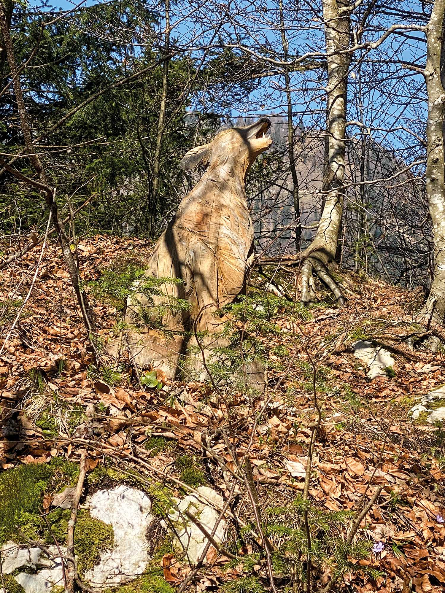 Wenn man beim Wandern auf Eulen, Auerhahn, Wolf und Bär trifft und in Schaukästen mitten im Wald Kunstwerke von Volksschulkindern hängen, dann ist man definitiv am Erlebnisweg Hochschanz unterwegs. Kunst inmitten des Kössener Wanderidylls Kalvarienberg-Kegelboden. Am 30. Juni 2018 wurde der Themenweg offiziell eröffnet, der Startschuss für die ersten Eisen-Skulpturen aus der Hand des Künstlers Peter Bichler fiel bereits zwei Jahre zuvor. Dazu kamen weitere Kunstwerke und hölzerne Tierfiguren, gestaltet von heimischen Künstlern samt Infotafeln mit interessanten Fakten rund um die dargestellten Tiere. Die damaligen Schüler der Mittelschule Kössen verwandelten Lärchenholzbretter am Wegesrand in bunte Skulpturen und die Kindergartenkinder wurden zu Künstlern beim Bemalen der Holzpilze, die am höchsten Punkt der Wanderung zu finden sind. In Summe entstand so vor inzwischen sieben Jahren ein Wanderweg, der zum Natur- und Kunstgenuss gleichermaßen einlädt und sich bei Groß und Klein hoher Beliebtheit erfreut. „Vor allem die Schaukästen, die immer wieder mit neuen Kunstwerken der Schulkinder gefüllt werden, ziehen die Blicke auf sich“, freut sich Vizebürgermeisterin und Kulturreferentin Marissa Dünser, die einst die Aufwertung und Neugestaltung der ursprünglichen Rundwanderung in die Wege leitete. „Der Weg ist nach wie vor in einem sehr guten Zustand, einige zusätzliche Treppen wurden errichtet. Und auch sonst wurde im Laufe der vergangenen sieben Jahren einiges ergänzt. So entstand beim Kreuz eine neue Sitzgelegenheit samt Fotopoint“, erläutert Marissa Dünser, deren Dank an den Tourismusverband sowie die Gemeinde Kössen geht. „Ohne sie wäre die Errichtung und jetzt die laufende Erhaltung des Weges nicht möglich. Genauso sage ich Peter Bichler für seinen Einsatz rund um die Erhaltung der Attraktivität der Kunstwerke danke und Rosi Filzer und Sofie Gründler für die Reinigungsarbeiten sowie den Volksschullehrerinnen für ihr großes Engagement.“ Gerade jetzt im Frühjahr und in den Sommermonaten lädt der idyllische, rund einstündige Rundwanderweg zum Entspannen und Staunen ein.