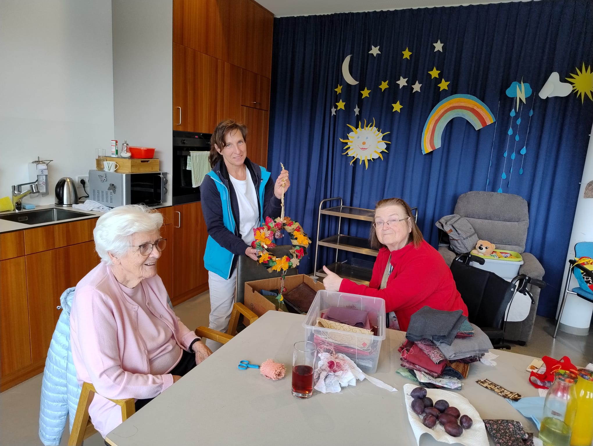 In der Tagesbetreuung ist der Herbst eingezogen und unsere Besucher waren wieder mit Eifer dabei. Die Räumlichkeiten wurden umdekoriert, „Herzerl“ für die „Wiesn“ gebastelt, Oktoberfest mit Weißwurst, Brezen und einem kleinen Schluck Bier gefeiert, uns an das Erntedankfest erinnert und vieles mehr. Gemeinsam sind wir, ganz spontan, zu den Kaiserwinkl Fischteichen in Schwendt gefahren und haben bei herrlichem Herbstwetter den Ausflug genossen. Wäre unsere Tagesbetreuung auch etwas für dich oder für eure Angehörigen? Bitte einfach nur melden, wir freuen uns über jeden Besucher (0676/84 85 36 107). VORINFORMATION: Am 29. November findet im Sozialzentrum der heurige „Adventzauber“ statt. Unsere Tagesbetreuung öffnet an diesem Tag auch ihre Türen, um vielen Besuchern die Möglichkeit zu geben, unsere Einrichtung kennenzulernen. Es gibt Einiges zum Schauen, zum Kennenlernen und viele Informationen. Bitte schaut vorbei – wir freuen uns!