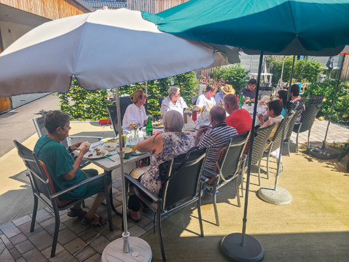 Einen kulinarischen Hochgenuss ermöglichten Anna und Josef Daxauer mit den von ihnen gesammelten Eierschwammerl, die sie ins Sozialzentrum brachten. Das Küchenteam zauberte einmal mehr und kreierte ein herbstliches Festessen für die Bewohner. Das war natürlich nicht der einzige kulinarische Hochgenuss in der letzten Zeit. Gleich zweimal wurde im Sozialzentrum zum Sommerausklang der Griller angeworfen. So wurden zuerst die Bewohner des Sozialzentrums mit einer bunten Auswahl an Gegrilltem, buntem Gemüse und verschiedensten Salaten, Saucen und vielem mehr verwöhnt. Kurz darauf legten die Bewohner des Betreuten Wohnens selbst Hand an und bereiteten gemeinsam eine gemütliche Grillfeier vor. Zusammen kreierten sie eine Vielfalt an Salaten, deckten den Tisch, rührten schmackhafte Saucen. Das Wetter zeigte sich passend dazu von seiner traumhaften Sommerseite.