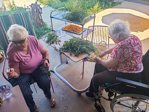 Gerührt und geschnitten wurde von den Sozialzentrumsbewohnern auch fleißig bei der Herstellung von Salben, Schnaps und Pesto. Die Kräuter stammten dabei allesamt aus dem eigenen Kräutergarten, wo die verschiedenen Heil- und Gewürzpflanzen heuer nur so wucherten. „Die Senioren haben einen riesigen Wissensschatz und zum Teil alte Familienrezepte rund um Heilkräuter sowie deren Einsatzmöglichkeiten. Darauf aufbauend kreierten sie gemeinsam Ringelblumen-, Kamillen und Arnikasalbe“, erzählt Heimleiter Josef Hörfarter. Arnikaschnaps zum Einreiben wurde angesetzt und herrlich würzig duftendes Basilikum-Pesto produziert. Diese wertvollen Köstlichkeiten sind am 30. November beim Christkindlmarkt des Sozialzentrums erhältlich genauso wie leckerer Zirbenzapfenlikör, der nach mehreren Rezeptvorschlägen der Bewohner entstand. „Die Senioren bearbeiteten die Zirbenzapfen selbst. Danach wurde der Zirbenzapfenlikör für drei Wochen angesetzt. Inzwischen wurde bereits verkostet und alle waren sich einig, dass der Likör einfach nur köstlich ist“, verrät Josef Hörfarter.