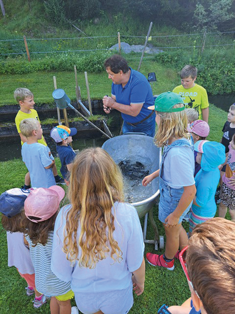 Die „Spiel mit mir Wochen“ in Schwendt waren sechs Wochen geprägt von Spiel, Spaß und Abenteuer. Kindergarten- und Schulkinder der Gemeinde Schwendt nahmen am vielfältigen Ferienprogramm teil. Besonders der Naturraum und das schöne Wetter wurden für Ausflüge zum Bach oder in den Wald genutzt. Bei Regenwetter wurde kreativ an Bastelprojekten gearbeitet, gekocht und experimentiert. Für Bewegung nutzten die Kinder den Turnsaal und den Boulderraum. Besondere Highlights der „Spiel mit mir Wochen“ waren der Besuch bei der Fischzucht von Klaus Brunner oder der Ausflug zum Motorikpark in Kössen. Ein besonderer Dank geht dabei an die Familie Brunner, die uns für einen spannenden Vormittag einlud. Nun wünschen wir den Schwendter Kindern einen guten Start in das neue Kindergarten- und Schuljahr!
