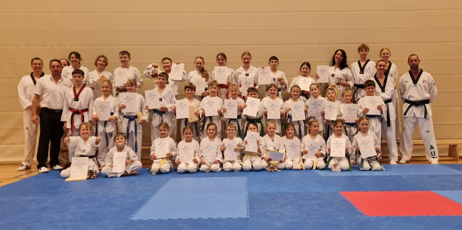 Ein weiteres Highlight war die traditionelle Gürtelprüfung, bei der die Taekwondo-Schüler und Schülerinnen ihre Fortschritte unter Beweis stellten. Unter den prüfenden Augen von Alex Lechthaler bestanden alle Teilnehmer erfolgreich und erhielten ihre neuen Gürtel. Die Prüfung war ein Symbol für den Einsatz und die kontinuierliche Entwicklung der Vereinsmitglieder.