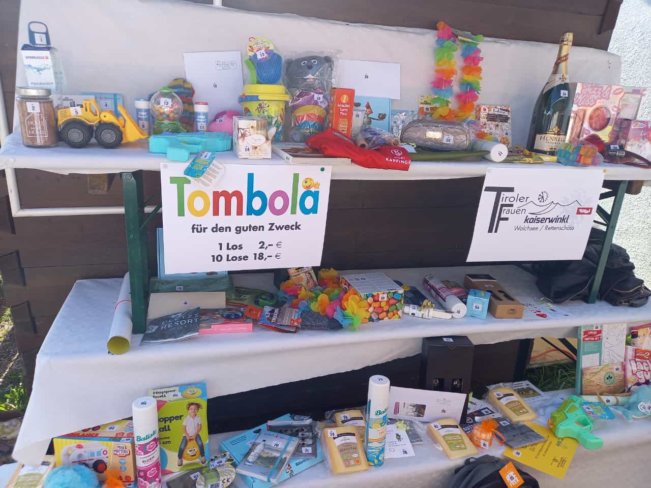 Unsere Tombola-Lose bringen nicht nur Spaß, sondern auch Herz: 99 % der Einnahmen spenden wir an bedürftige Einheimische. Und falls jemand Lust hat, Preise oder Gutscheine zu spenden, freuen wir uns riesig – einfach eine Nachricht per WhatsApp an: 0676/82337103 oder per Mail an: tirolerfrauenwalchsee@gmail.com.