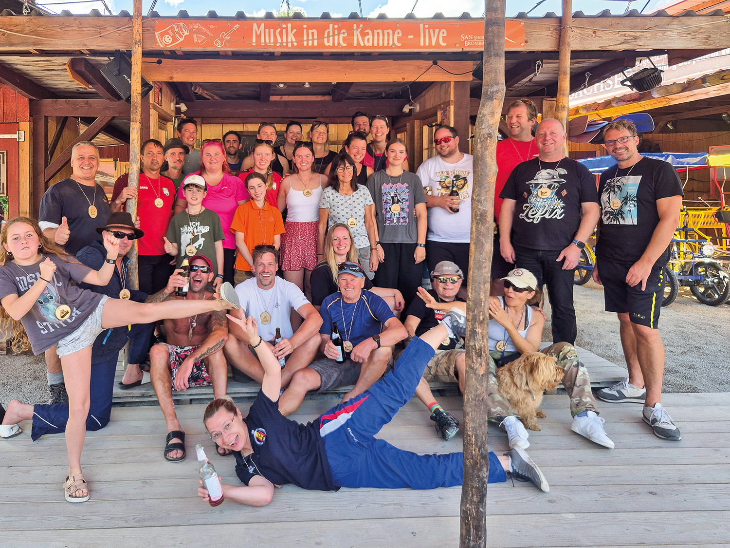 Ein weiteres Highlight folgte wenig später für die erwachsenen Vereinsmitglieder: Zum 50-jährigen Vereinsjubiläum ging es an den Brombachsee. Das abwechslungsreiche Programm ließ keine Wünsche offen: Bei einer spannenden Brauerereibesichtigung tauchten die Teilnehmer in die Welt des Bierbrauens ein. Am Abend sorgte ein gemütliches Lagerfeuer für perfekte Sommerstimmung. Am nächsten Tag ging es dann auf Entdeckungstour – mit einer lustigen Rikscha-Fahrt und dem Barfußweg, der für viel Spaß und einige Lacher sorgte. Anschließend ging es actionreich beim Wasserskifahren und Bogenschießen weiter.