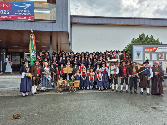 Beim Bezirksmusikfest haben auch wir unsere Musikkapelle tatkräftig unterstützt. Es ist schön zu sehen, dass bei so einer großen Veranstaltung zahlreiche Kössener Vereine so „zommhelfen“. Beim Festumzug am Sonntag waren wir mit 78 Trachtlerinnen und Trachtlern vertreten. Für Groß und Klein war es eine besondere Freude durch die vielen Zuschauer zu marschieren und unsere 3 Darsteller am Festwagen repräsentierten voller Stolz die Entscheidung um den Tiroler Freiheitskampf.