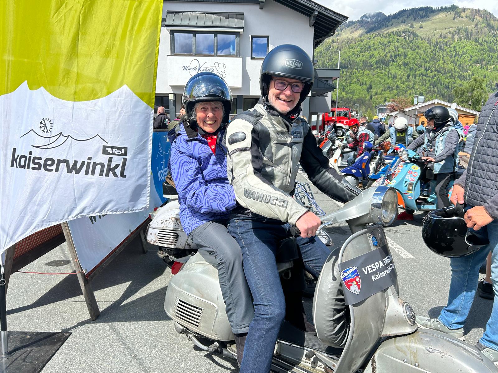 Der trendige Roller aus Italien erfreut sich großer Beliebtheit, so kamen auch wieder begeisterte Vesparisti aus mehreren Ländern angereist. Dabei waren alle Variationen von Vespas, verschiedenste Modelle, Baujahre und Farben. Nach dem Weißwurstfrühstück ging die gemeinsame Ausfahrt durch die Region Kaiserwinkl, mit dabei auch der Kössener Bürgermeister Reinhold Flörl mit seinem fahrbaren Untersatz.