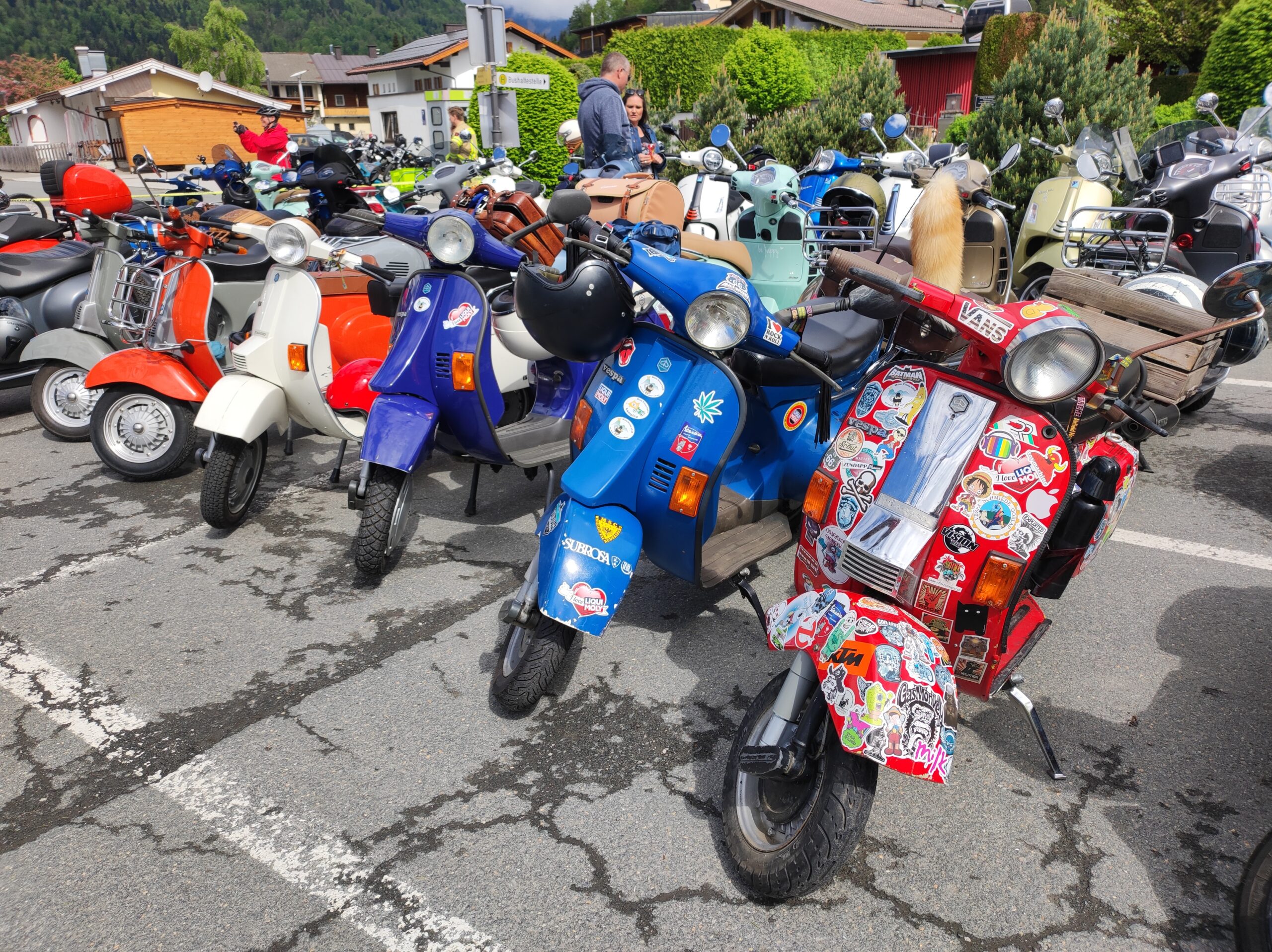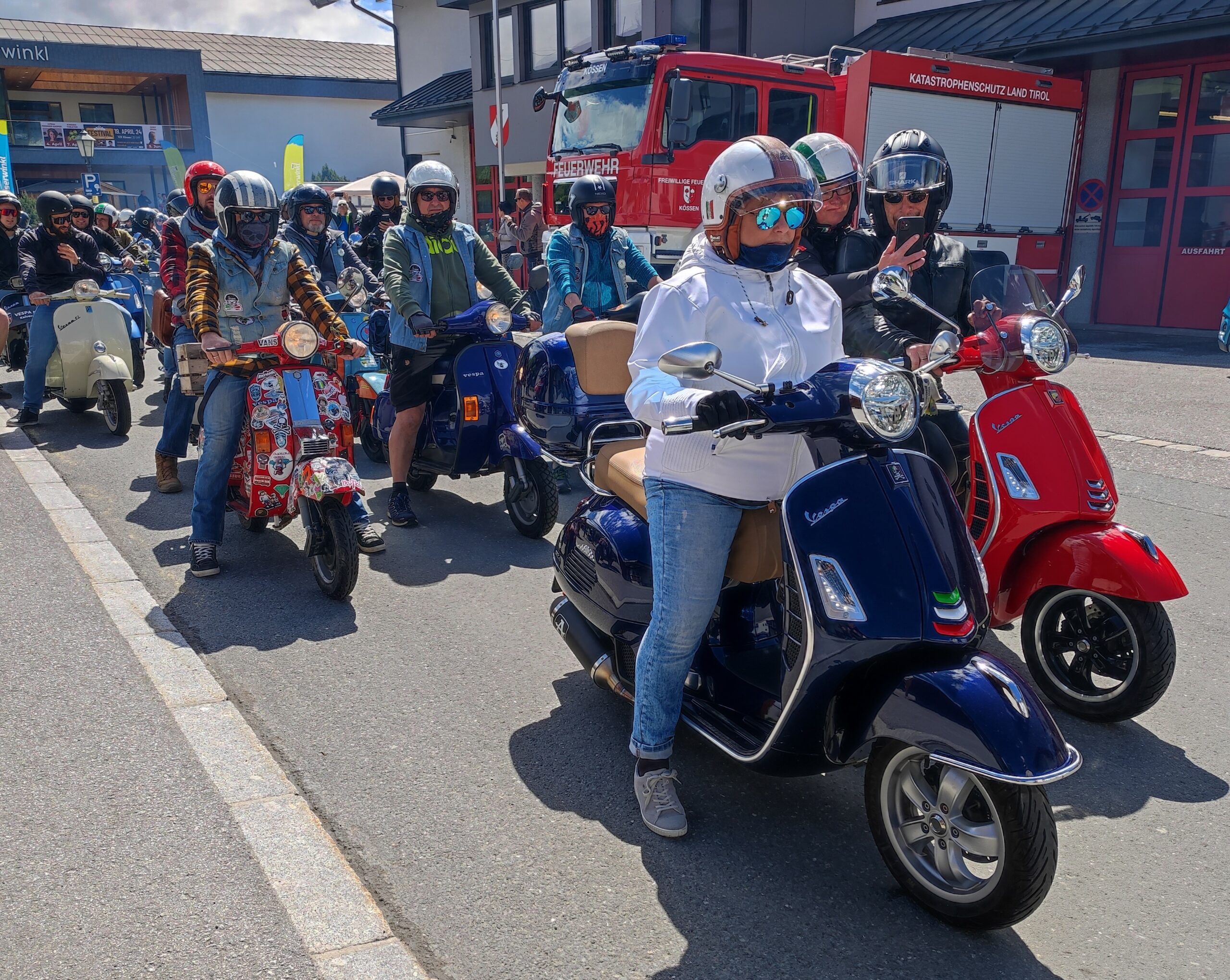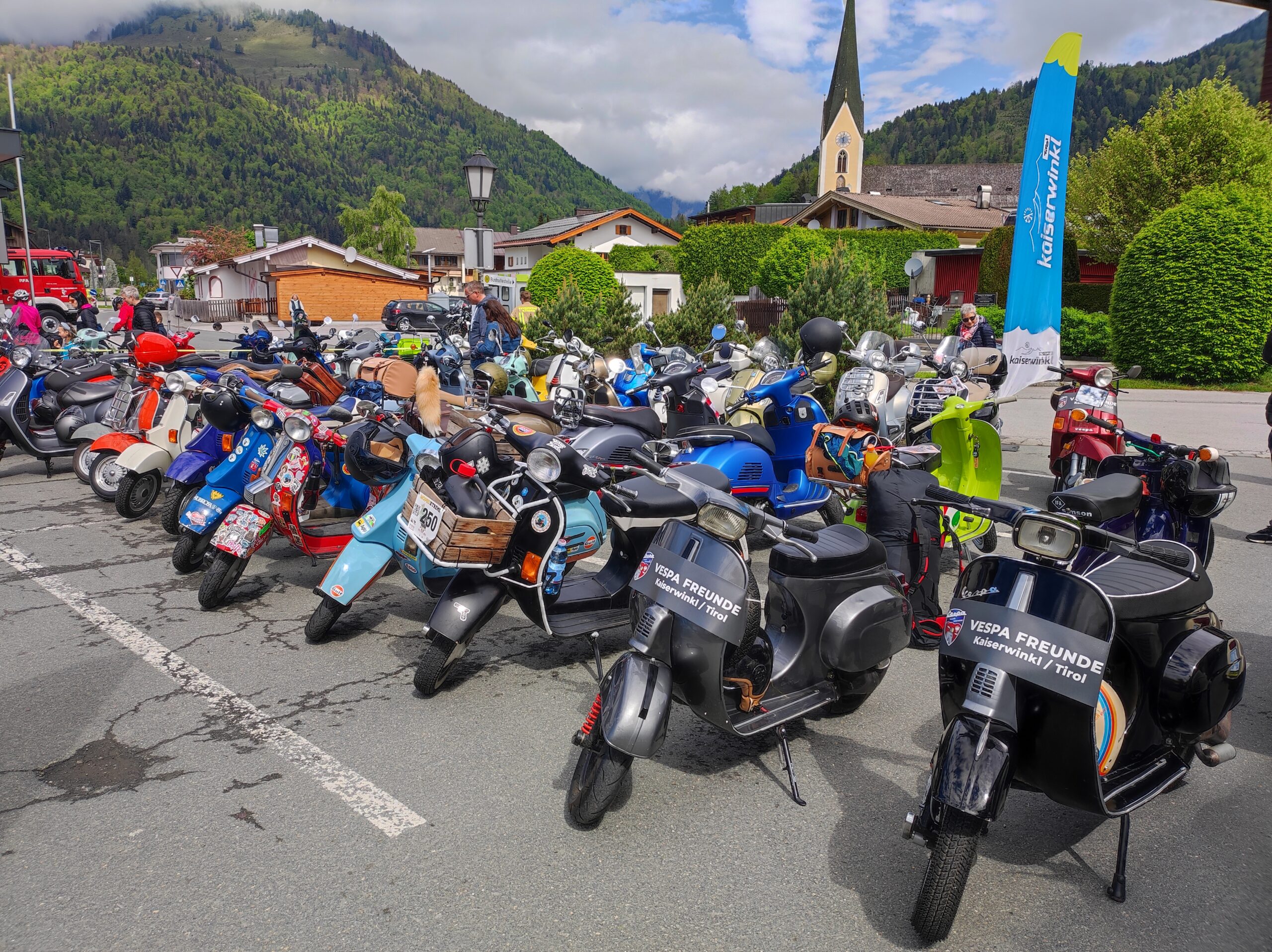 Einige Hundert Vespa Besitzer mit ihren Kultrollern kamen am Samstag, 4. Mai, zum großen Treffen nach Kössen. Eingeladen hatten zum 3. Mal die „Vespa Freunde Kaiserwinkl“ gemeinsam mit dem Motorradclub „Road Runner’s“ . Das Treffen stand auch heuer wieder unter dem Motto „ONE HELL OF A RIDE ZUR  MOTORRADWEIHE“. Weil das Wetter nach einem nassen Freitag mitspielte, meinte der Organisator Thomas Kirchmaier gemeinsam mit seinem Team: