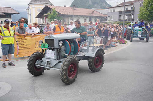 Am Sonntag, 30. Juni, folgte dann der Oldtimerfrühschoppen mit der Musikkapelle Kössen. Ebenso fand an diesem Tag das Zweirad- und Traktortreffen statt. 91 verschiedene Traktoren waren bei der Rundfahrt mit dabei – ein beeindruckendes Schauspiel, auch für die Zuschauer und Zuschauerinnen. Die Teilnehmer kamen dabei aus nah und fern. Den weitesten Anreiseweg (Anhänger) hatten wohl einige Luxemburger, per Achse hatten Teilnehmer aus Podersdorf am Neusiedlersee sowie aus Niederbayern, Oberbayern und dem Pinzgau den längsten Weg. Ebenso waren viele Teilnehmer aus den Bezirken Kitzbühel und Kufstein zu den Oldtimertagen angereist.