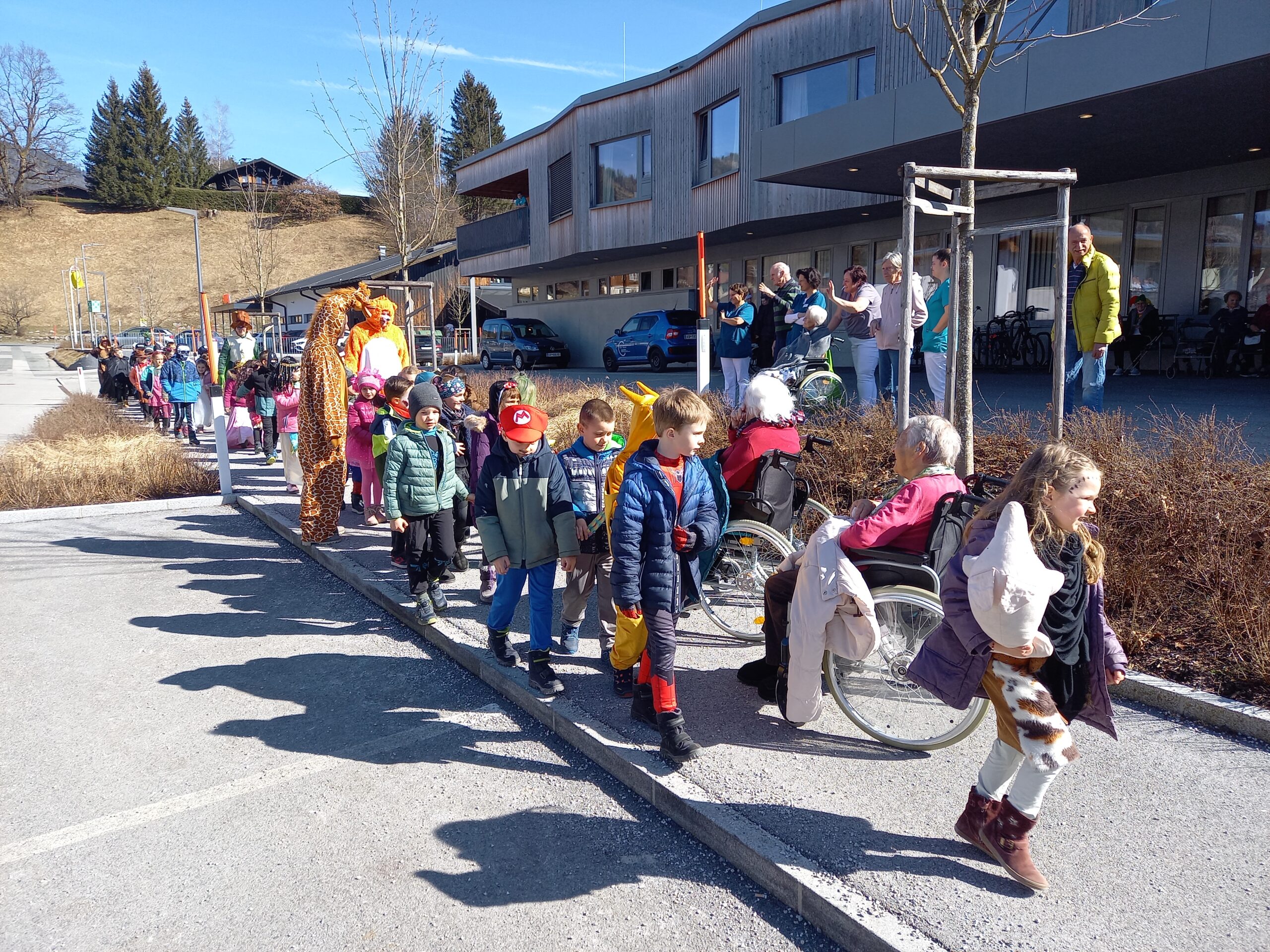 Was wäre ein Fasching ohne Faschingskrapfen? Undenkbar. Das dachten sich auch die Landegger Schwestern Anita und Sonja. Die beiden schauten am Rosenmontag zur Nachmittagsjause vorbei und überraschten die Bewohner mit köstlichen Faschingskrapfen. „Für große Begeisterung sorgten in der Faschingszeit auch die Kinder der Volksschule Kössen. Farbenfroh kostümiert, marschierten sie zum Sozialzentrum und verbreiteten jede Menge gute Stimmung unter den Bewohnern. Die Zusammenarbeit mit Kindern bereitet unseren Senioren immer ganz besonders viel Freude“, erklärt Josef Hörfarter.