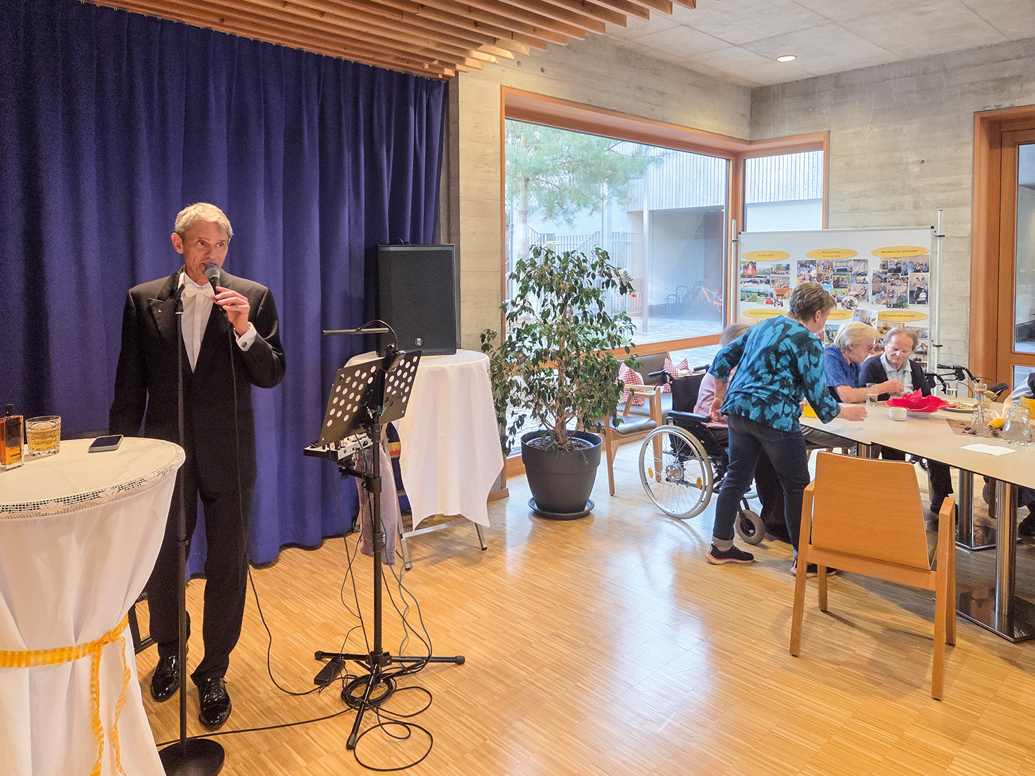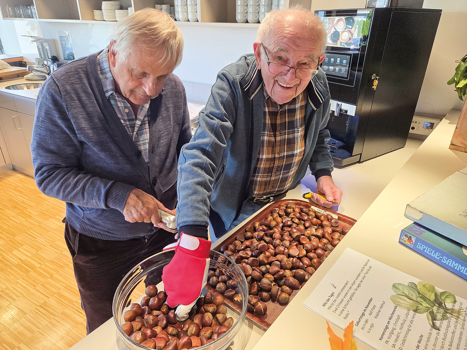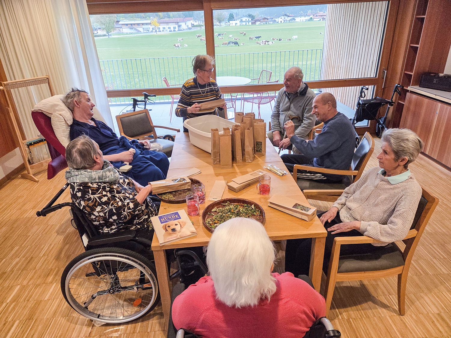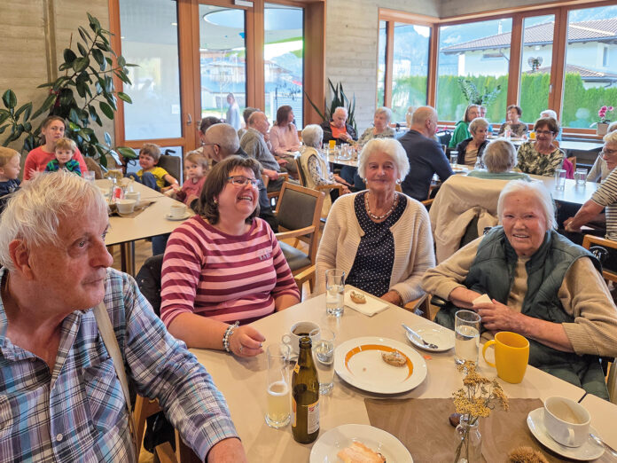 Im Herbst zeigten sich nicht nur die Blätter im Sozialzentrumsgarten von ihrer bunten Seite. Auch das Programm für die Bewohner des Sozialzentrums Kössen-Schwendt war äußerst abwechslungsreich. So lud der Theaterstadl Walchsee die Bewohner zu einem Ausflug in die Nachbargemeinde ein. „Das verflixte Klassentreffen“ brachte die Senioren immer wieder zum Lachen. Es war ein äußerst heiterer Nachmittag, den die Senioren sichtlich genossen. „Ein herzliches ,Vergelt’s‘ Gott den Mitgliedern des Theatervereins und dem Taxi Bus Kitzbichler, der für eine verlässliche Hin- und Rückfahrt sorgte“, so Heimleiter Josef Hörfarter, der auch noch gleich von einem zweiten Nachmittag erzählt, der voller guter Laune war. „Christian Schebitz kam im Sozialzentrum vorbei und verzauberte sein Publikum mit einer großartigen Frank-Sinatra-Performance. Danke vielmals für diese Abwechslung.“ Kulinarisch erwartete die Bewohner dazu ein gemütliches Törggelen. Selbstgebackenes Brot, köstliche Aufstriche und frisch gebratene Kastanien bildeten den perfekten Gaumenschmaus zur Musik. Kulinarisch ging es für die Bewohner auch nach Italien, dank der alljährlichen Pizzaspende vom Sternenhof und vom Kebab Kaiser. „Wir wurden mit den unterschiedlichsten Pizzen verwöhnt. Die Senioren waren begeistert und so mancher erinnerte sich an vergangene Urlaube im Süden.“