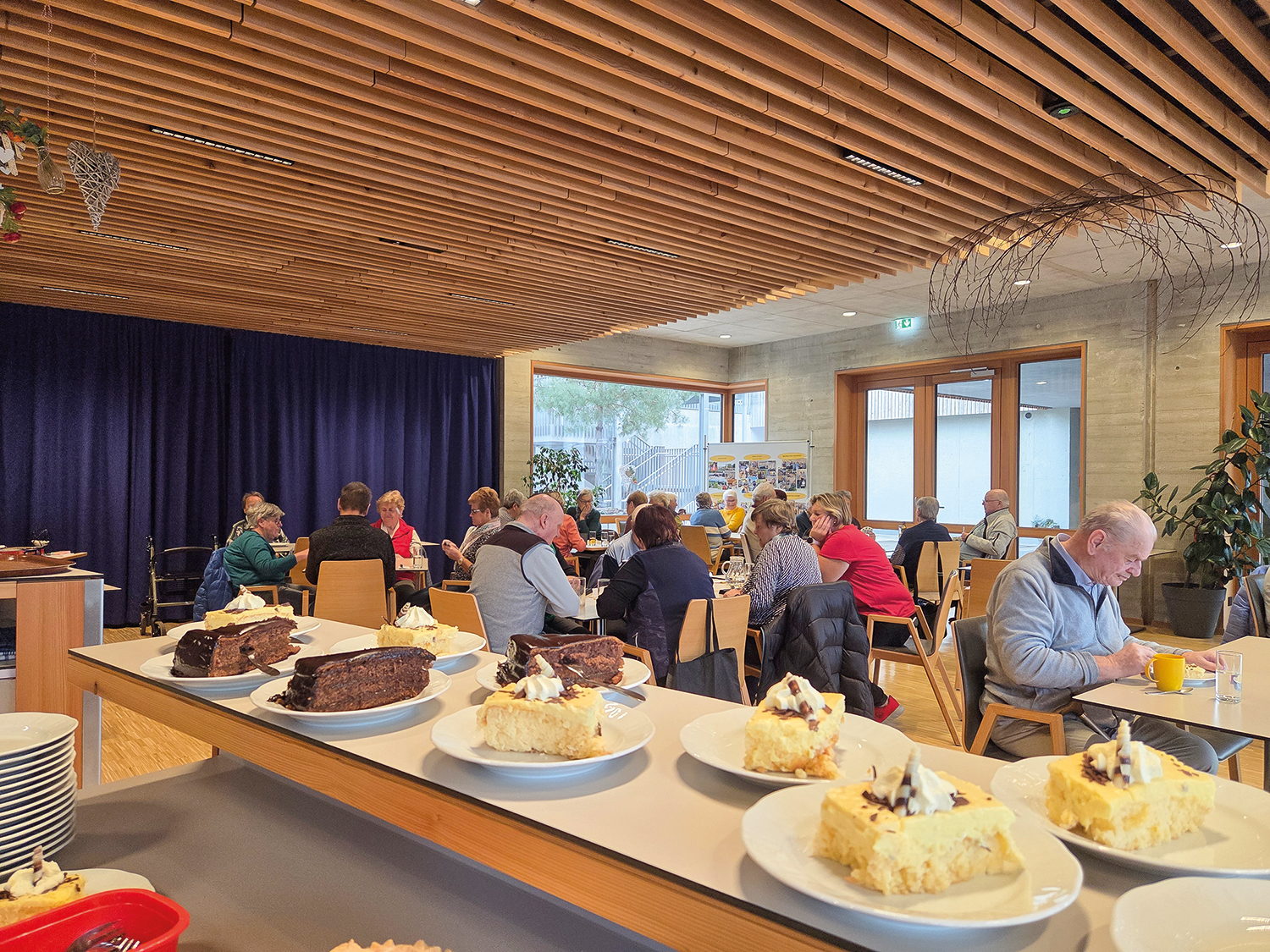 Der November stand ganz im Zeichen der letzten Vorbereitungen für den Adventzauber, der am 29. November wieder das unvergleichliche Flair der Weihnachtszeit ins Sozialzentrum brachte. Es wurde gebastelt, abgefüllt und auch ab und an verkostet. Das Team von Sport & Mode Mühlberger brachte ebenfalls Wintergefühle ins Haus und organisierte erneut einen Modenachmittag speziell für die Bewohner des Sozialzentrums und des Betreuten Wohnens. Das Sozialzentrumcafé verwandelte sich in eine Modeboutique, in der die neuesten Winterkollektionen präsentiert wurden. Die Senioren konnten in aller Ruhe von Ständer zu Ständer flanieren, sich fachkundig beraten lassen und die Kleidungsstücke anprobieren. So mancher entdeckte ein neues Lieblingsstück. „Ich kann nur immer wieder betonen, wie wichtig solche Nachmittage sind. Für viele Bewohner ist es kaum noch möglich in ein Modegeschäft zu gehen, um dort einzukaufen. Durch diese Initiative kommt die Mode zu ihnen. Ganz ungezwungen und unterstützt durch die Mitarbeiter wird für sie so Einkaufen wieder möglich. Allein das Gefühl, einkaufen zu können, zaubert vielen ein Lächeln ins Gesicht. Danke für diese Möglichkeit“, erklärt Josef Hörfarter. Wie vielfältig das Sozialzentrumcafé ist, zeigte sich kurz darauf beim Spielenachmittag, den der Seniorenbund Kössen organisierte. An mehreren Stationen luden verschiedene Gesellschaftsspiele zum Mitmachen ein – von Kartenklassikern bis zu kniffligen Brettspielen. Es wurde gelacht, geplaudert und mitunter auch ein kleiner Wettkampf ausgetragen. Für die nötige Stärkung wurde Kaffee und eine bunte Auswahl an Kuchen serviert. Die perfekte Abrundung für diesen unterhaltsamen Nachmittag.