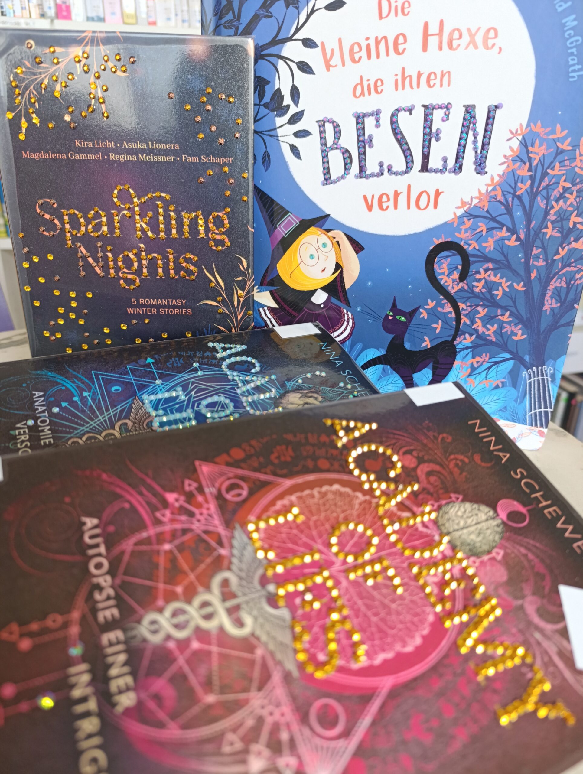 Manchmal braucht es nur ein wenig Kreativität, um aus etwas Schönem etwas wirklich Besonderes zu machen. Genau das ist bei unseren beiden Veranstaltungen „Book Bedazzling“ sowie „Lesezeichen & Karten Bedazzling“ geschehen. Funkelnde Strasssteinchen und liebevoll gestaltete Details haben dafür gesorgt, dass nun einige echte Buchschmuckstücke in unseren Regalen stehen.