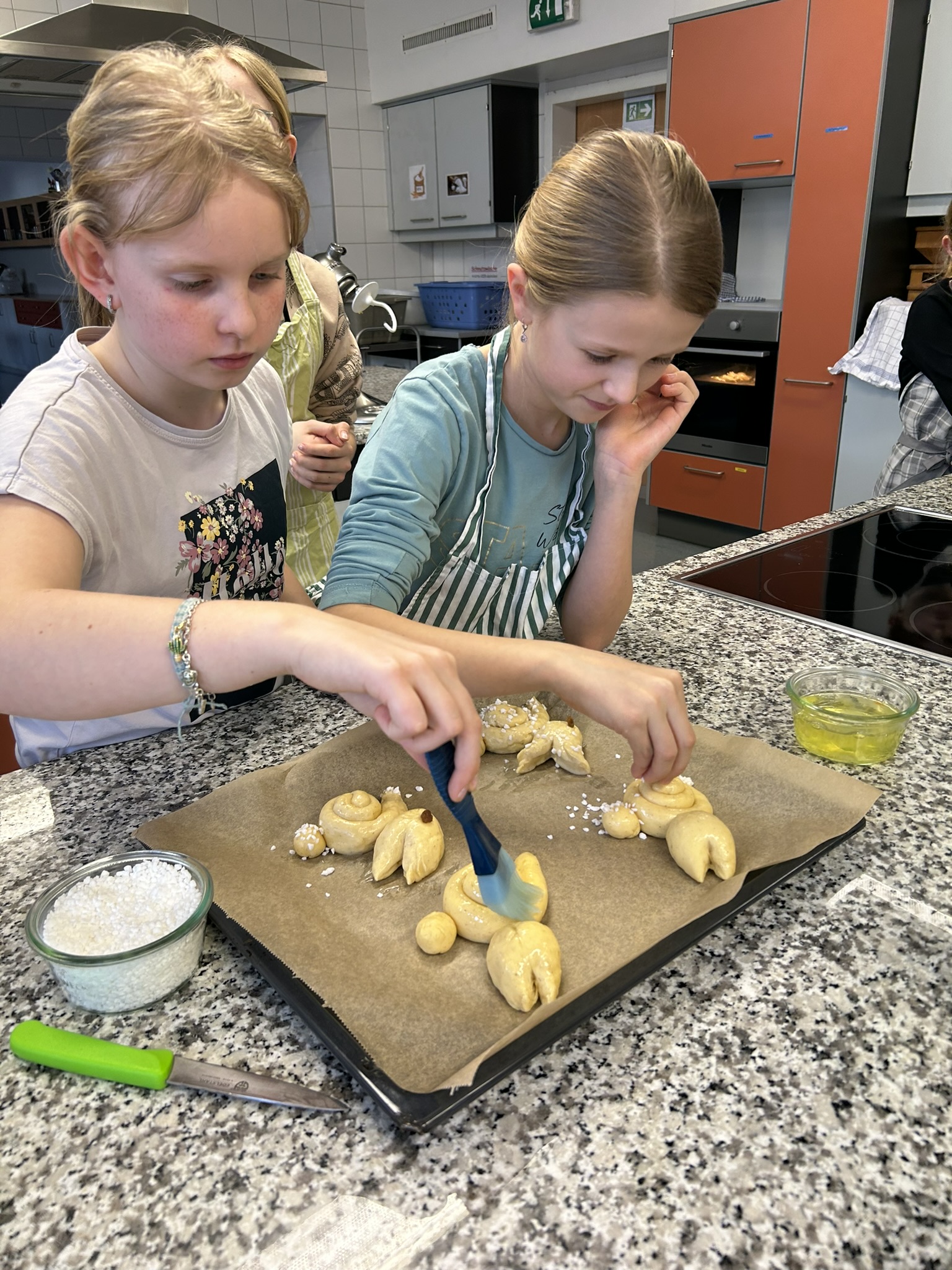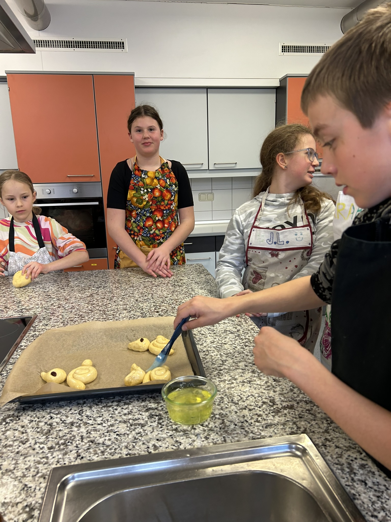 Mit großem Geschick wurde geknetet und geflochten – und dabei die Zeit zum Osterhasen verkürzt. Am Mittwoch, den 13.03.2024 veranstaltete Maria Bellinger durch die gesunde Gemeinde Kössen den zweiten Backkurs für Kinder in der Schulküche der MS-Kössen. Ernährungspädagogin Maria-Anna Wolfenstetter BEd. leitete mit der Unterstützung von Anita Kirchner den Kurs. Die 12 backbegeisterten Kinder konnten mit den Tipps und Tricks einen Germteig zubereiten, ausarbeiten und backen. Die dabei entstanden Osternester und Häschen können sich sehen lassen und stimmen auf die bevorstehende Osterzeit ein. „Dass die Kinder mit so viel Begeisterung und Leidenschaft dabei sind, ist schön zu erleben. Da macht das Backen doppelt Spaß.“, so Maria-Anna.